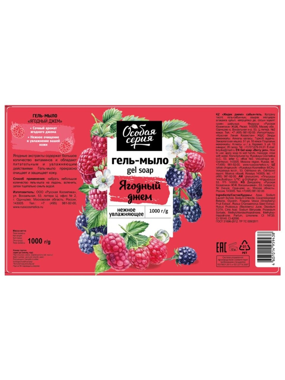 Каждая капелька нежного гель-мыла наполнена сочным ароматом вкуснейшего ягодного джема. Ягодные экстракты содержат большое количество витаминов и обладают питательным и увлажняющим действиями. Гель-мыло прекрасно очищает и защищает кожу.