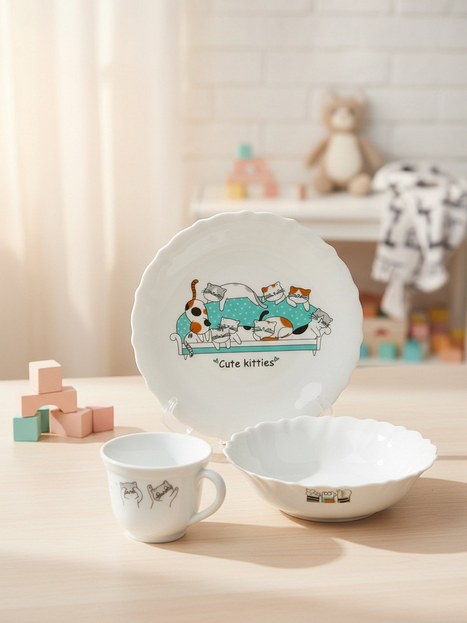 Набор детской посуды Blue Meowz Parsopal из 3 предметов — это современное решение для заботливых родителей, ищущих, какую посуду выбрать для ребёнка. Керамика сохраняет температуру еды, не впитывает запахи и устойчива к появлению сколов. Благодаря подарочной упаковке и нейтральному белому цвету с ярким рисунком, комплект одинаково хорошо подойдёт для девочек и мальчиков, а также станет отличным подарком на любой праздник.