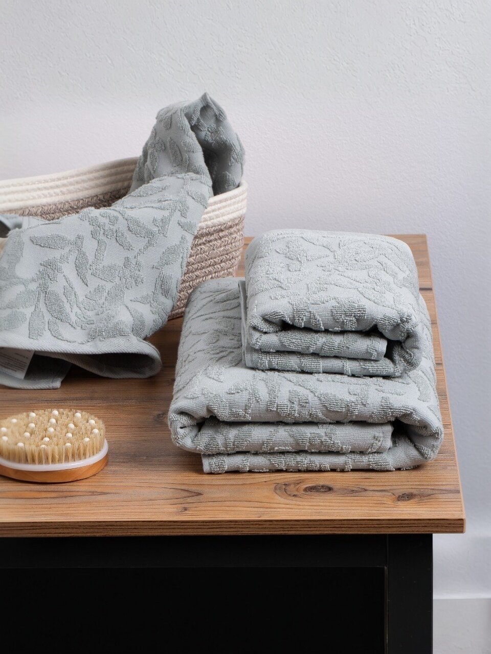 Изготовленные из 100% хлопка, полотенца обладают высокой плотностью 480 г/м2, что обеспечивает мягкость и долговечность. Серо-ментоловый цвет добавит свежести и спокойствия в интерьер ванной комнаты, а изящный цветочный рисунок придаст нотку утонченности и изысканности. Этот набор включает два полотенца разных размеров: 50х90 см и 70х140 см, что позволяет использовать их как для лица, так и для тела.