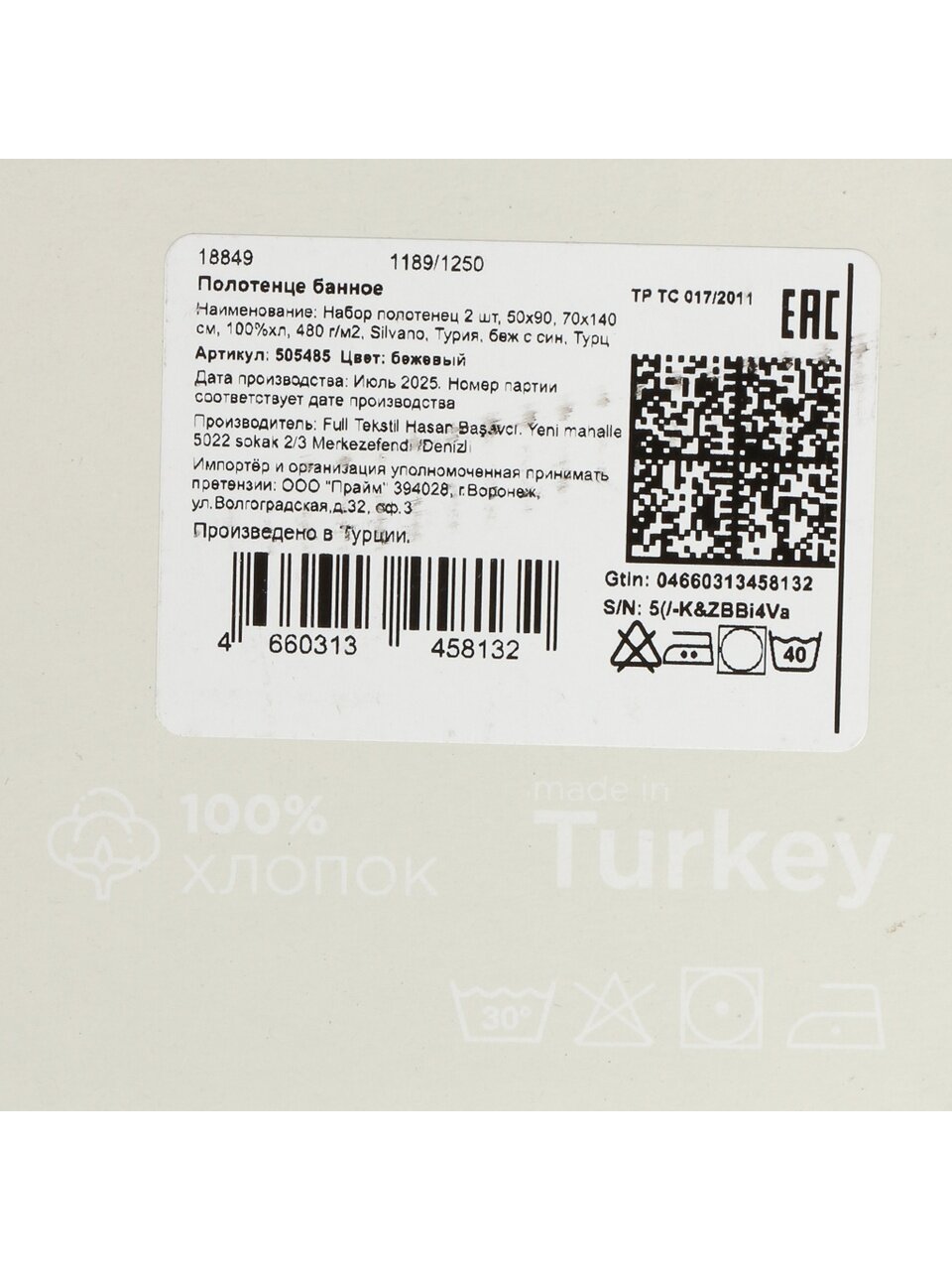 Вы можете приобрести «Набор полотенец 2 шт, 50x90, 70x140 см, 100% хлопок, 480 г/м2, Silvano, Турия, бежевый, синий, Турция» и другие товары в нашем интернет-магазине в Орле по низким ценам и с бесплатным самовывозом.