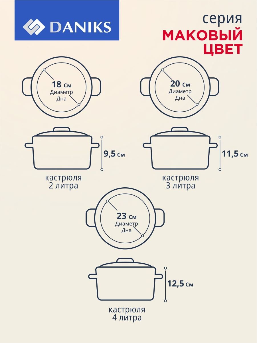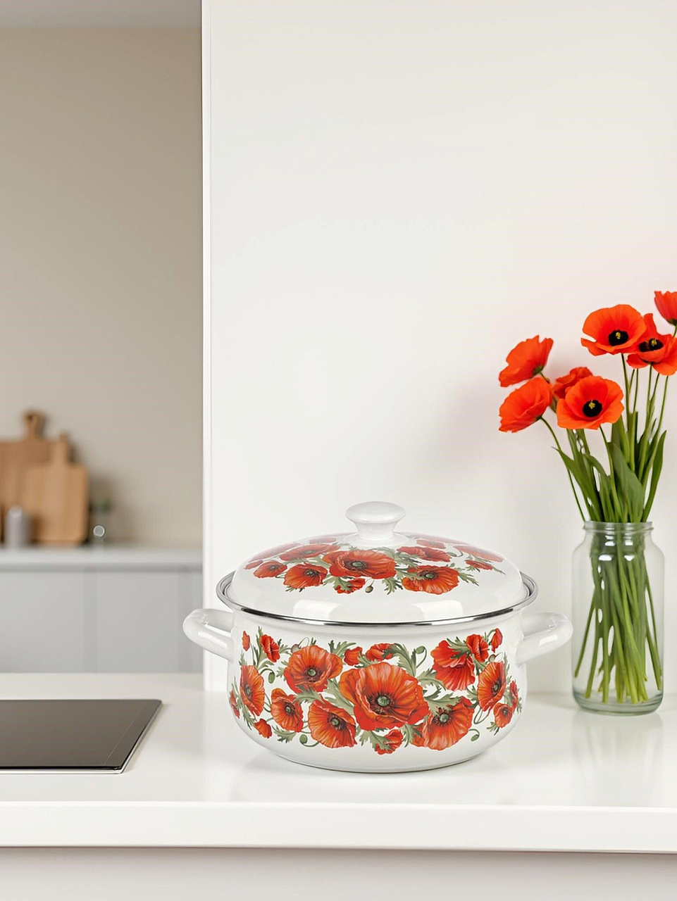 Набор кастрюль Daniks «Маковый цвет-1» из эмалированной стали: 6 предметов для стильной кухни, долговечность и универсальность по выгодной цене.