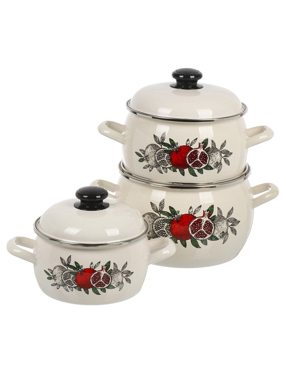 - Оптимальные размеры: кастрюли на 2, 3.5 и 5 литров из эмалированной стали — долговечность и легкий уход