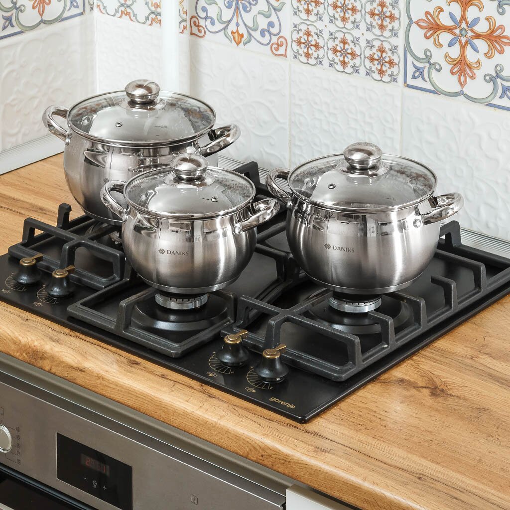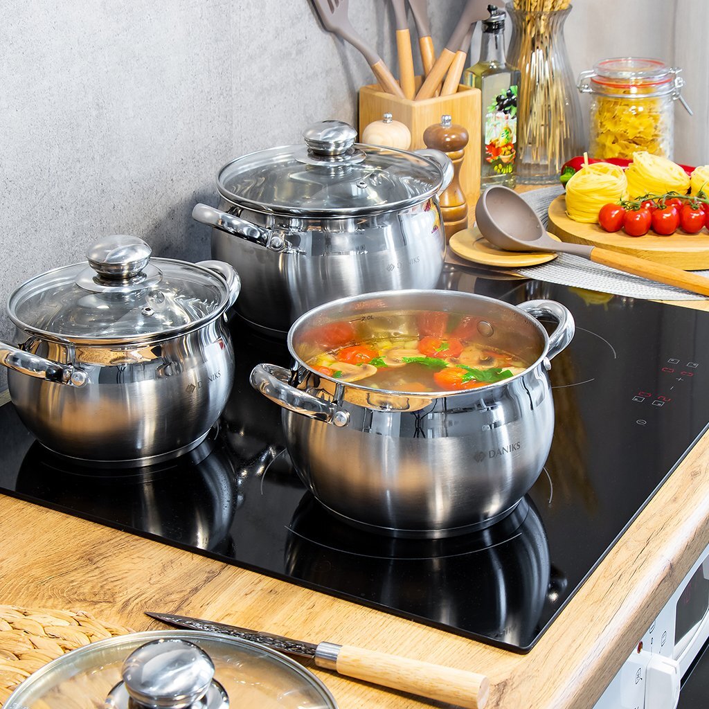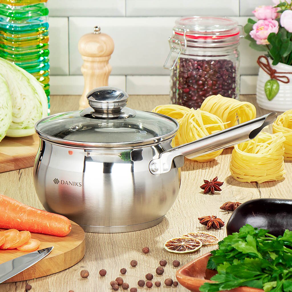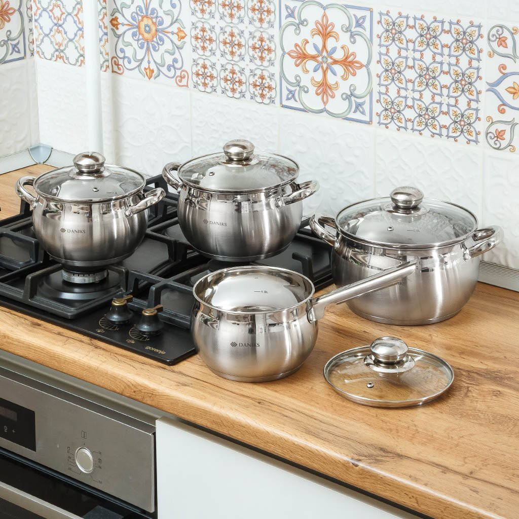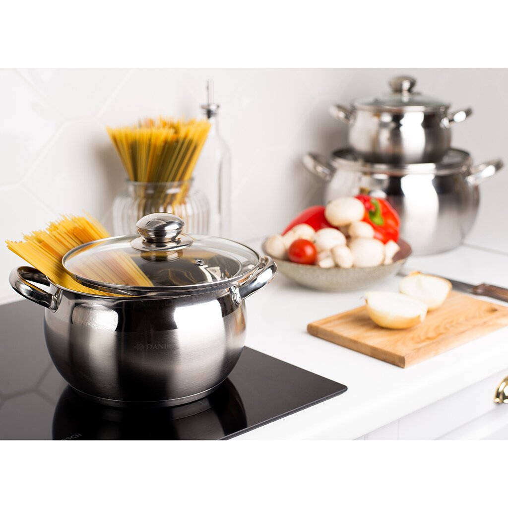 Набор посуды Daniks Классика SD-6-7 выполнен из высококачественной нержавеющей стали. Крышки из прозрачного стекла позволяют контролировать процесс приготовления пищи. Металлические ручки удобны, прочны и не нагреваются при использовании посуды.