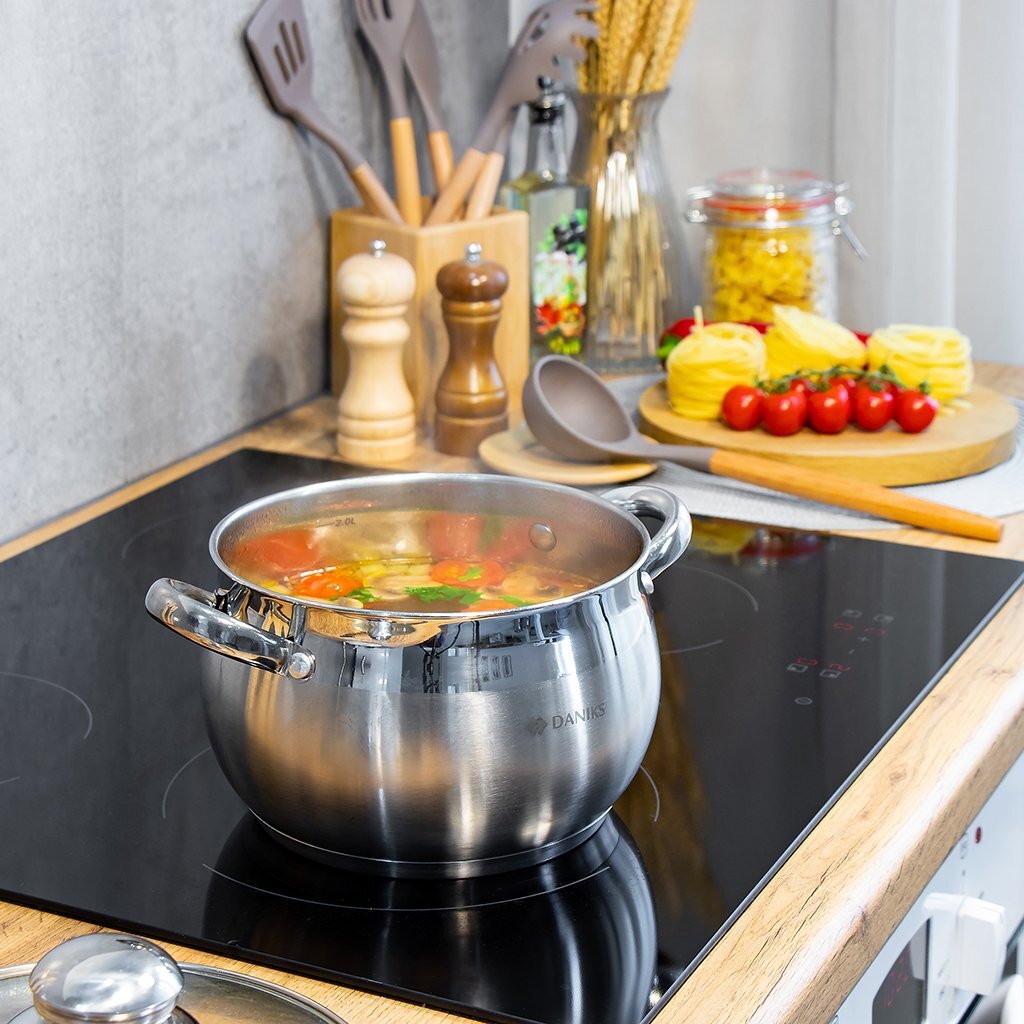 - Можно использовать на газовых, электрических, стеклокерамических, индукционных плитах.