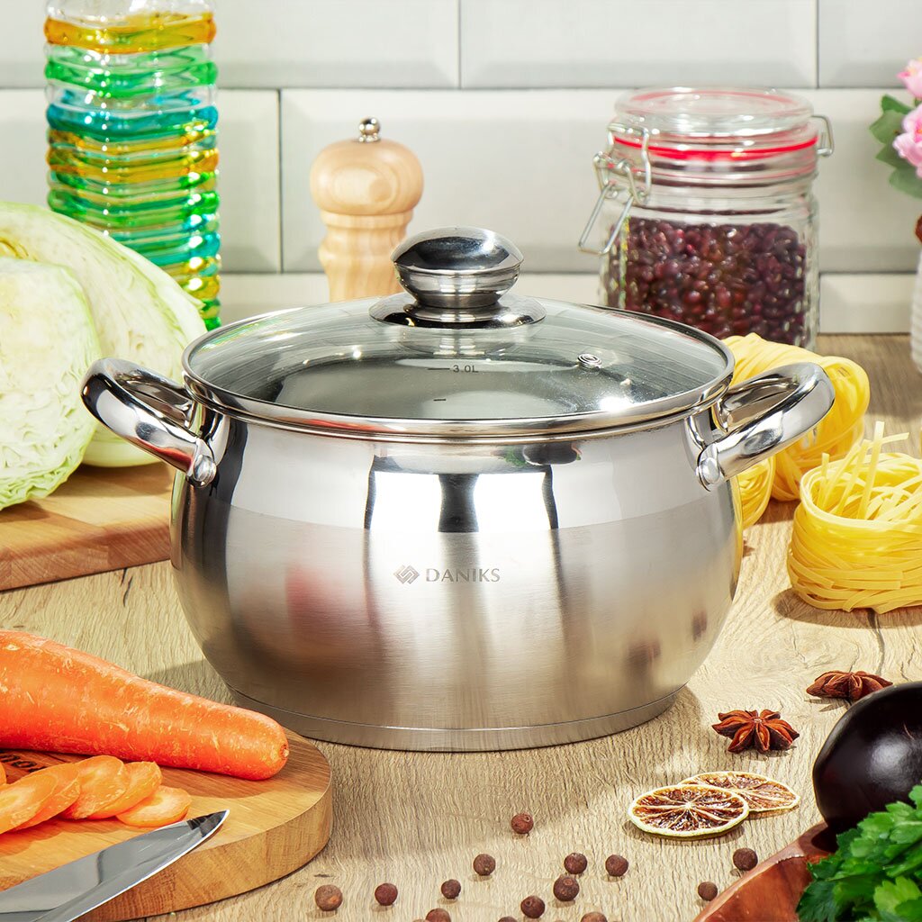 Вы можете приобрести «Набор посуды нержавеющая сталь, 7 предметов, кастрюли 1.9,2.9,3.9 л, ковш 1.9 л, индукция, Daniks, Классика, SD-6-7» и другие товары в нашем интернет-магазине в Нижнем Новгороде по низким ценам и с бесплатным самовывозом.