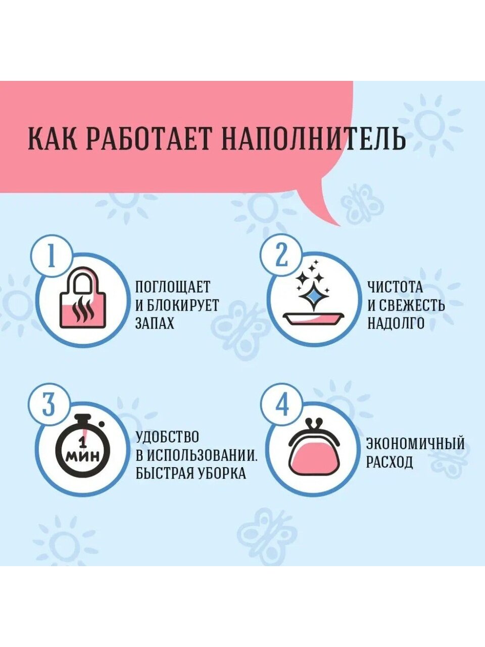 - Наполнитель сохраняет чистоту и свежесть лотка надолго.