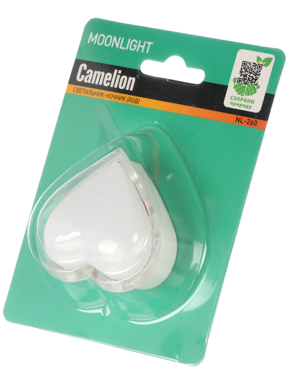 Ночник Camelion NL-260 Сердце — экономичный LED-светильник в розетку 220 В для дома и дачи. Стильный дизайн, низкое энергопотребление 0,3 Вт, гарантия 12 мес. Решение для уютного освещения без лишних затрат.