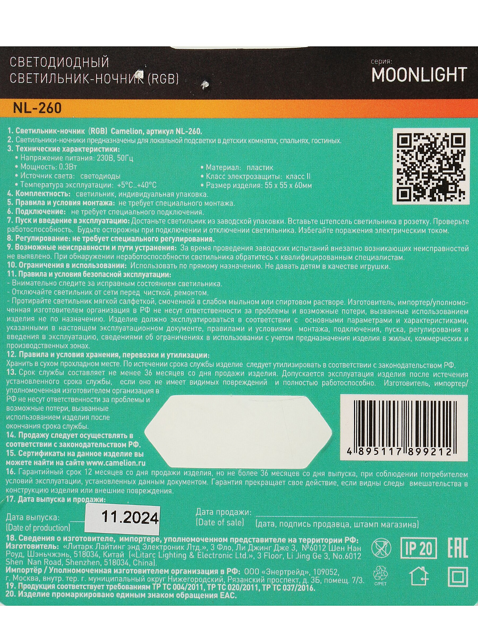 Если вы ищете, какой ночник выбрать для спальни или что лучше для освещения в коридоре ночью — обратите внимание на Camelion NL-260. Он прост в установке, не требует дополнительных аксессуаров и работает от стандартной сети 220 В.
