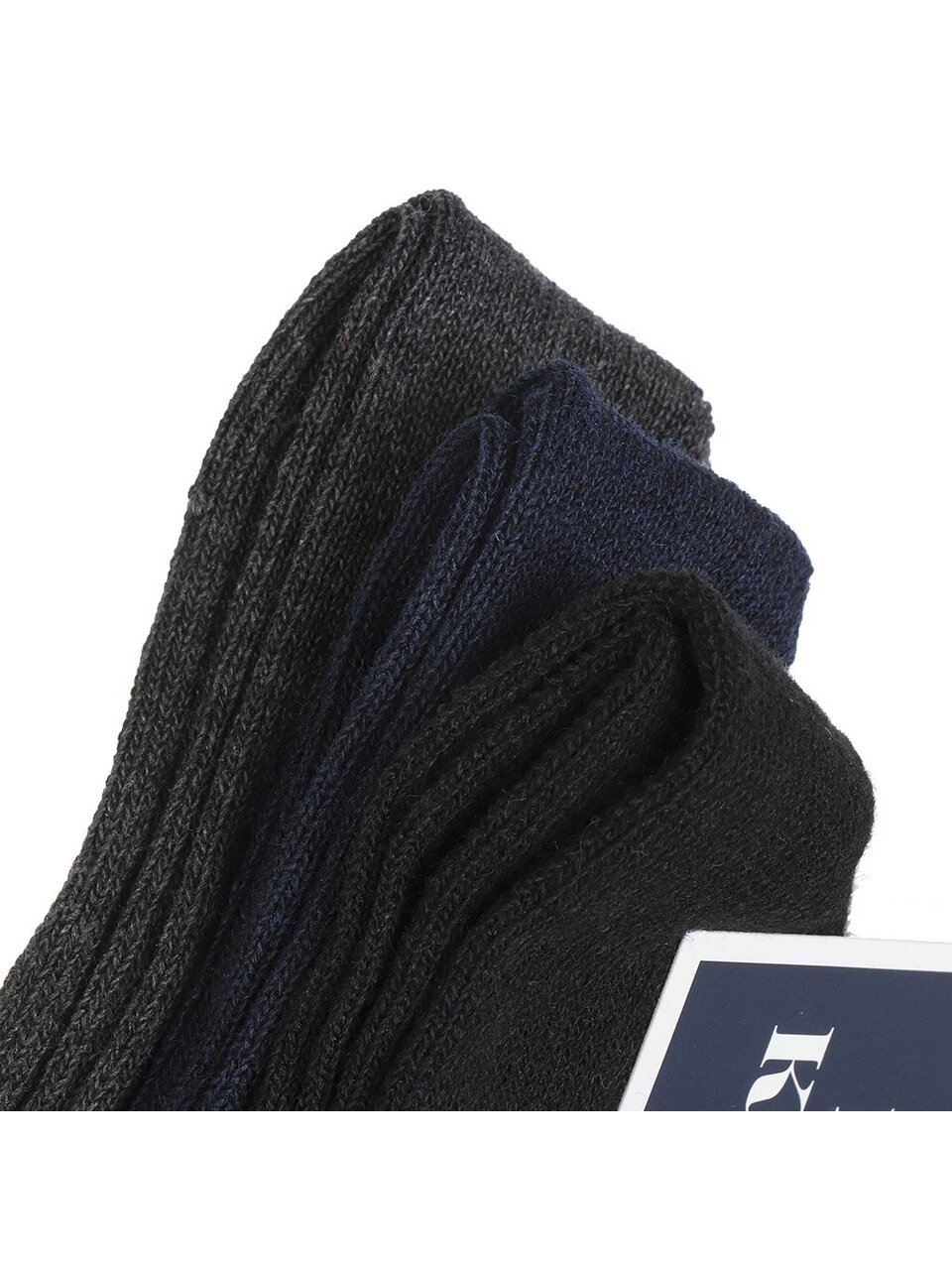 Эти классические мужские носки из хлопка станут идеальным дополнением к повседневному образу. Комплект из трех пар в черном, синем и темно-сером цветах подходит для любого случая и обеспечивает комфорт в течение всего дня.