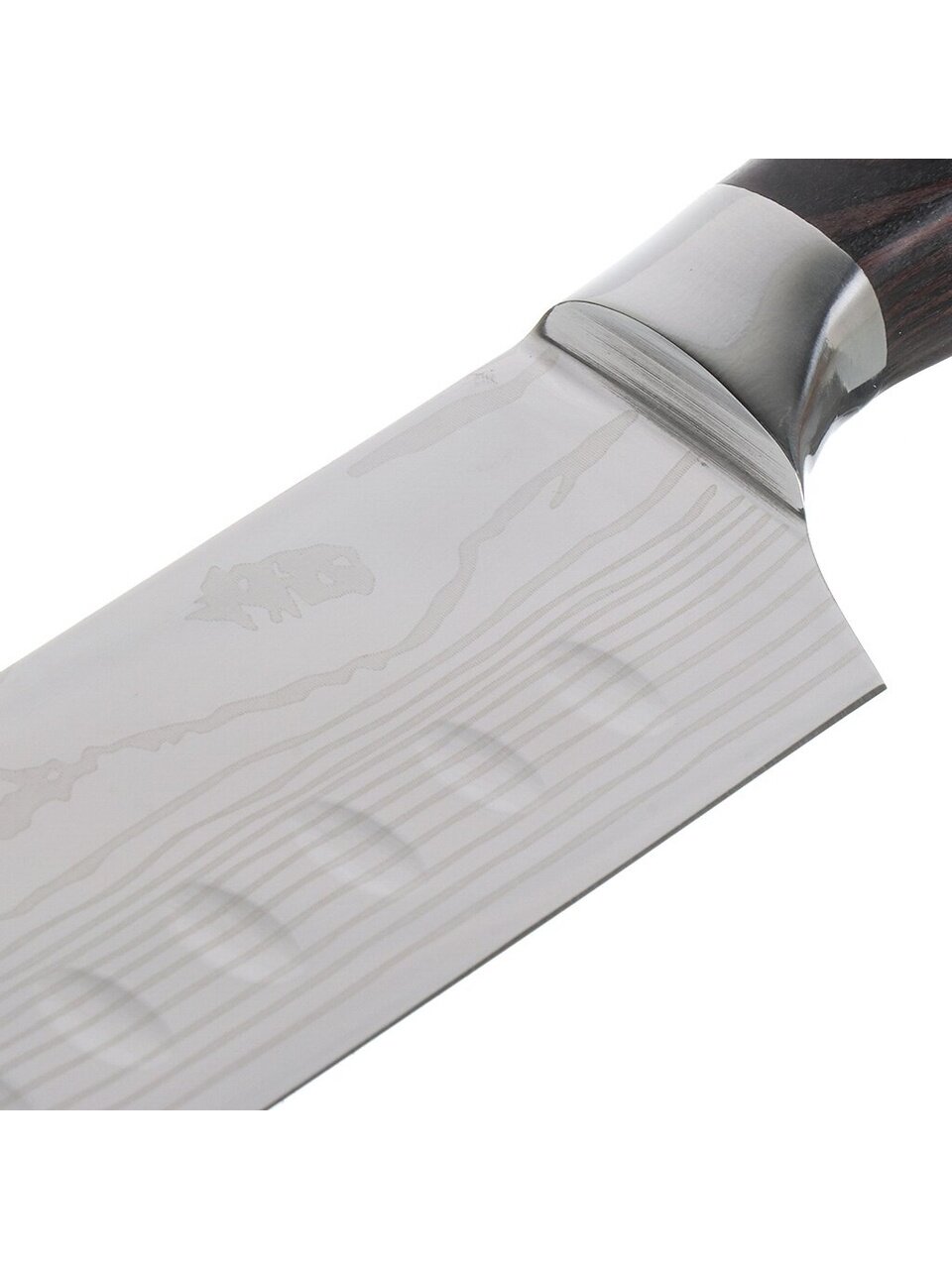 Рукоятка из дерева не только придает ножу стильный и элегантный вид, но и обеспечивает комфортный и надежный захват. Это делает использование ножа максимально удобным даже при длительной работе. Благодаря цельнометаллической конструкции, нож обладает высокой прочностью и долговечностью, что гарантирует долгий срок службы без потери качества.