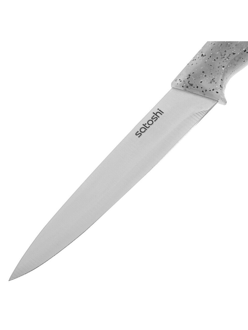 Универсальный нож Satoshi Ивуа с лезвием из нержавеющей стали — это выбор тех, кто ищет надёжный инструмент для ежедневной готовки. Благодаря двусторонней заточке и длине 12.7 см, нож идеально подходит для нарезки любых продуктов: от овощей и фруктов до небольших кусков мяса и сыра. Эргономичная пластиковая рукоятка обеспечивает комфорт даже при длительной работе, снижая риск скольжения.