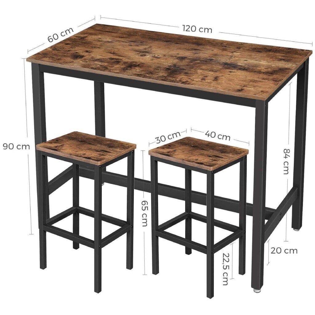 Барный стол и 2 барных стула с качественной винтажной поверхностью - прекрасное дополнение вашей кухни или гостиной. Черная стальная рама не только создает привлекательный контраст с деревянной столешницей, но также служит практичной подставкой для ног.