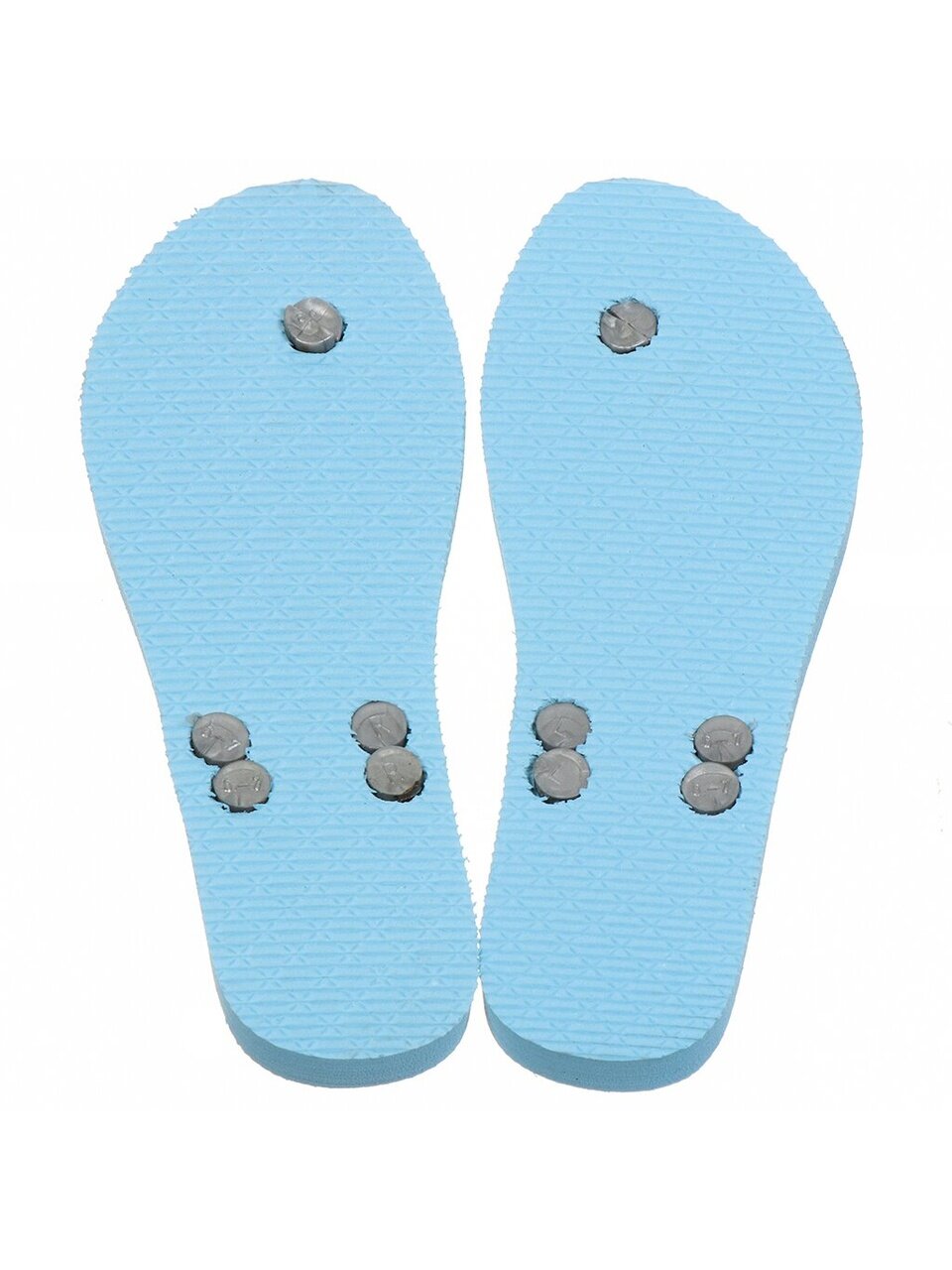 Женские сланцы выполнены из ПВХ голубого цвета, они лёгкие и удобные. Сплошная подошва не позволит ногам уставать в течение всего дня. Сланцы станут незаменимым вариантом для отдыха на природе или пляже.