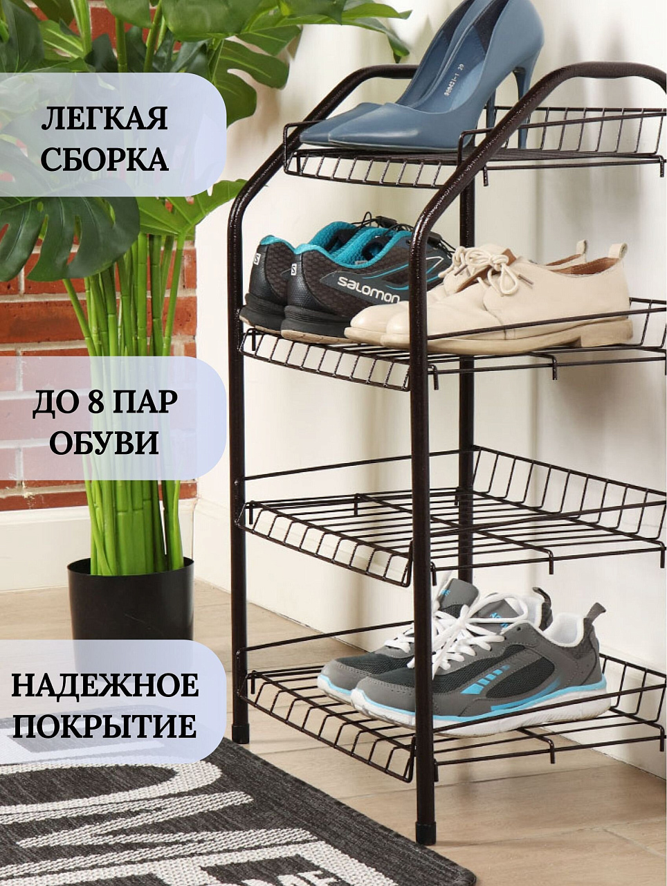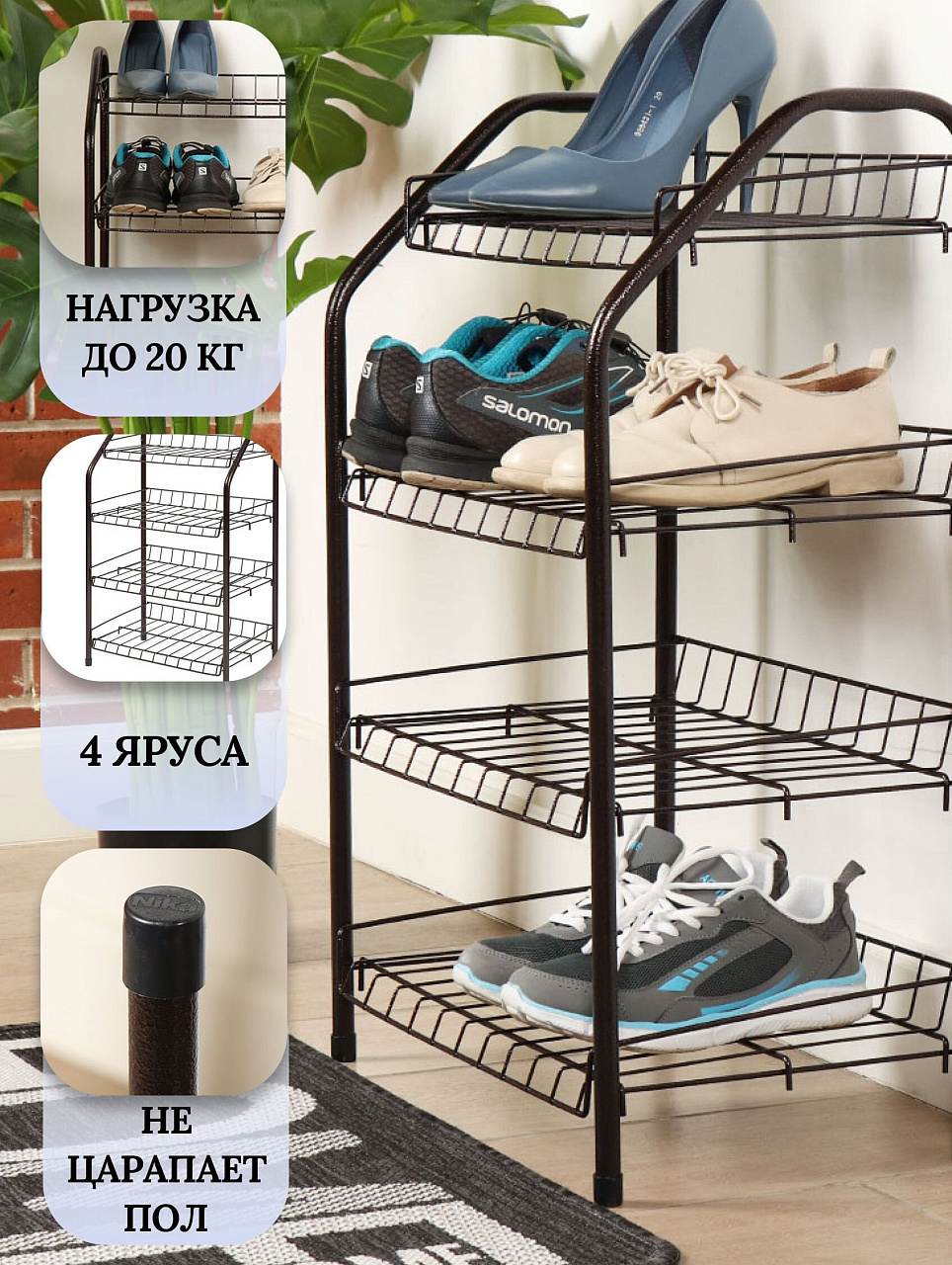 Вы можете приобрести «Полка для обуви, металл, 4 секции, 46х28х70 см, медный антик, Nika, ЭТ2/А» и другие товары в нашем интернет-магазине в Орле по низким ценам и с бесплатным самовывозом.