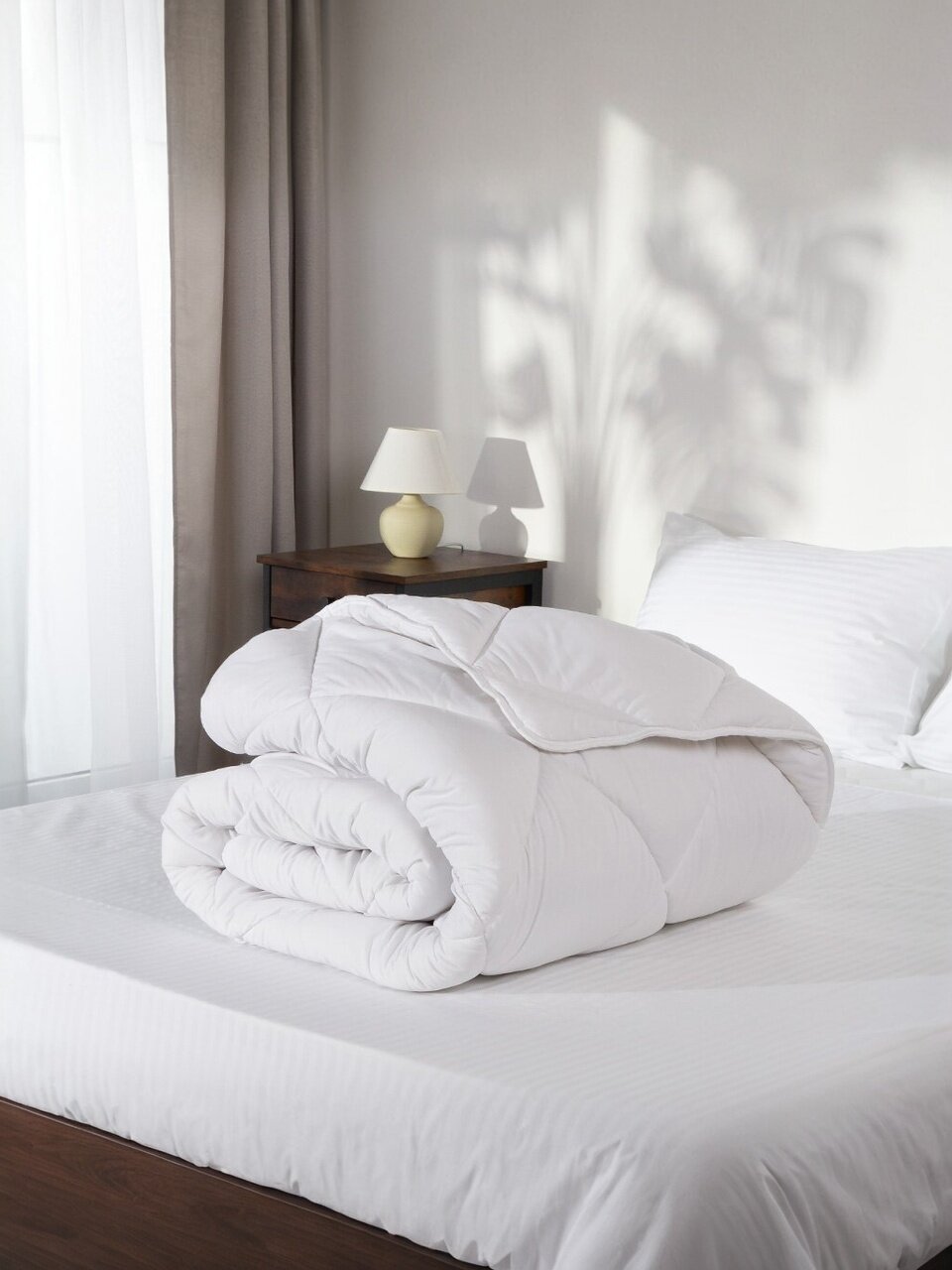 Одеяло 1.5-спальное 140х205 см «Майская ночь» с лебяжьим пухом: всесезонный комфорт, гипоаллергенность, идеальный выбор для дома и дачи — купить выгодно онлайн.