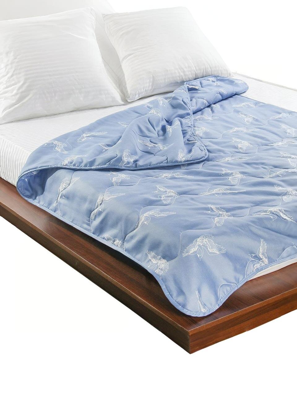 — Летнее одеяло с плотностью 100 г/м2 и наполнителем «лебяжий пух» оптимально для жарких ночей: оно легкое, не перегревает и подходит для аллергиков.