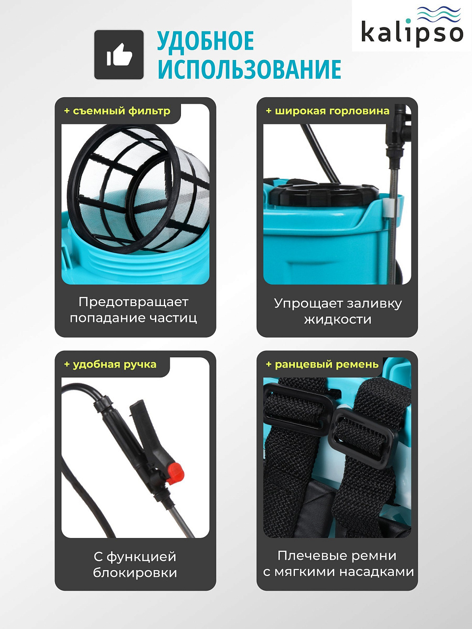 - Вместительность. Вы сможете поливать большую площадь или обрабатывать большое количество растений без необходимости частой дозаправки.