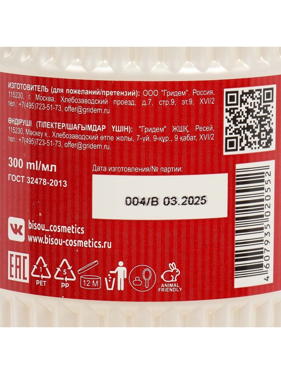 Объём флакона — 300 мл. При экономичном использовании хватает на 2-3 месяца регулярного применения.