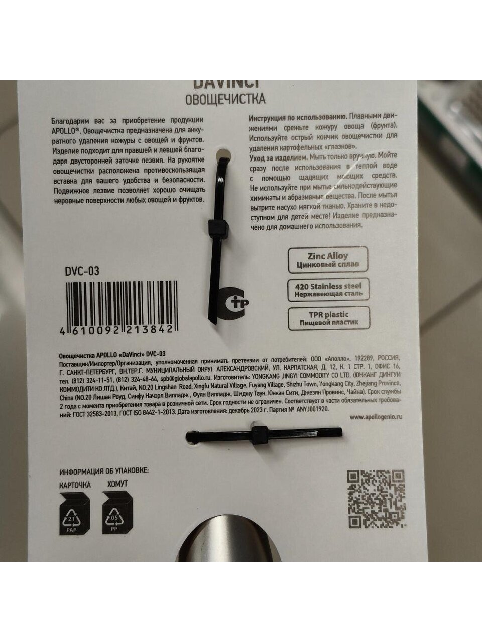 Вы можете приобрести «Овощечистка нержавеющая сталь, пластик, Apollo, DaVinci, DVC-03» и другие товары в нашем интернет-магазине в Казани по низким ценам и с бесплатным самовывозом.