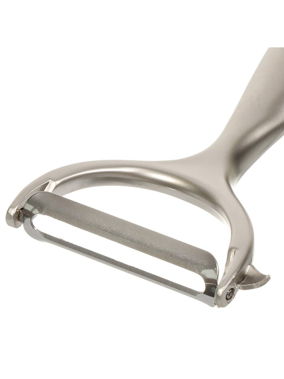 Овощечистка предназначена для аккуратного удаления кожуры с овощей и фруктов. Изделие подходит для правшей и левшей благодаря двусторонней заточке лезвия. На рукоятке овощечистки расположена противоскользящая вставка для вашего удобства и безопасности. Подвижное лезвие позволяет хорошо очищать неровные поверхности любых овощей и фруктов.