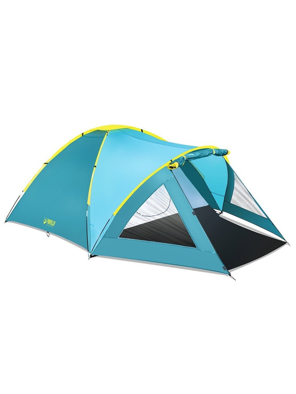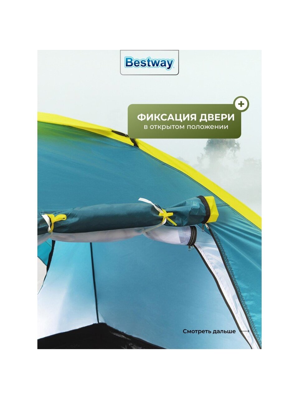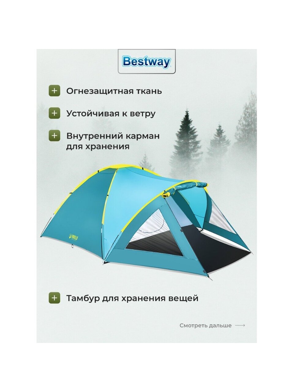 - Обтекаемая структура палатки обеспечивает устойчивость при ветре;