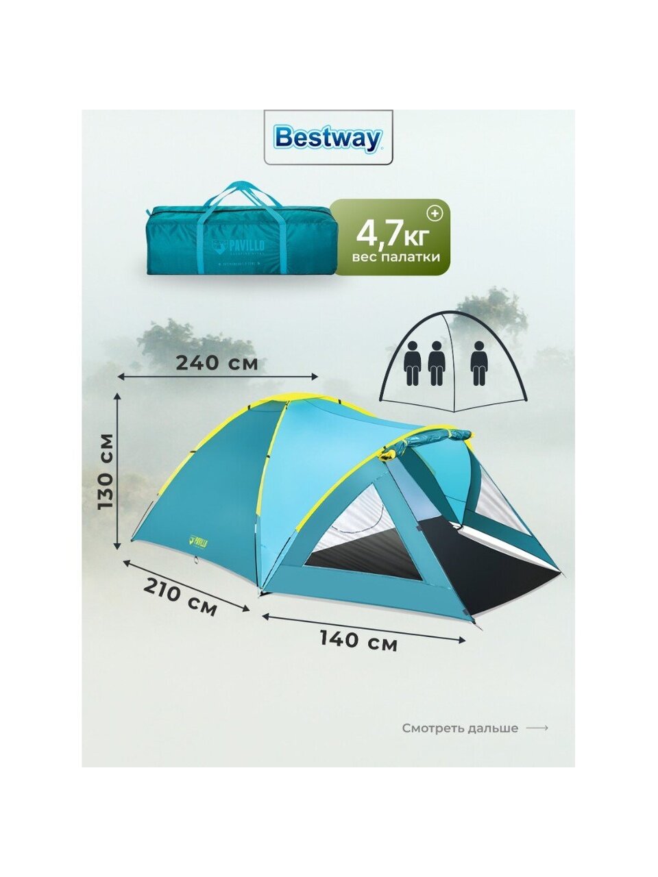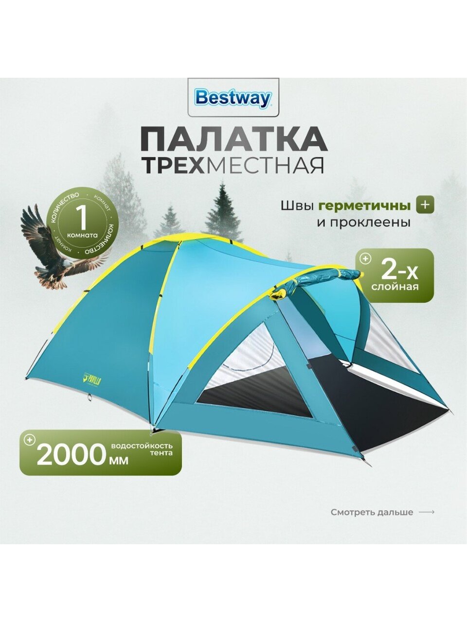 Вы можете приобрести «Палатка 3-местная, 210+140х240х130 см, 2 слоя, 1 комн, 1 тамб, с москитной сеткой, 2 выхода, Bestway, 68090 BW» и другие товары в нашем интернет-магазине в Коврове по низким ценам и с бесплатным самовывозом.