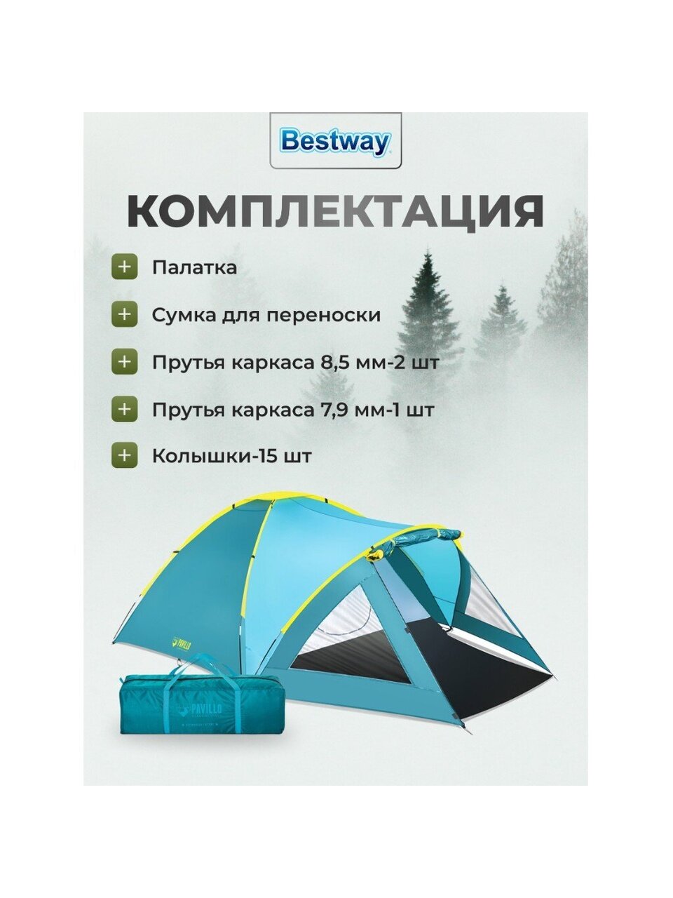 - Материал тента: 190T полиэстер с покрытием PU2000mm;
