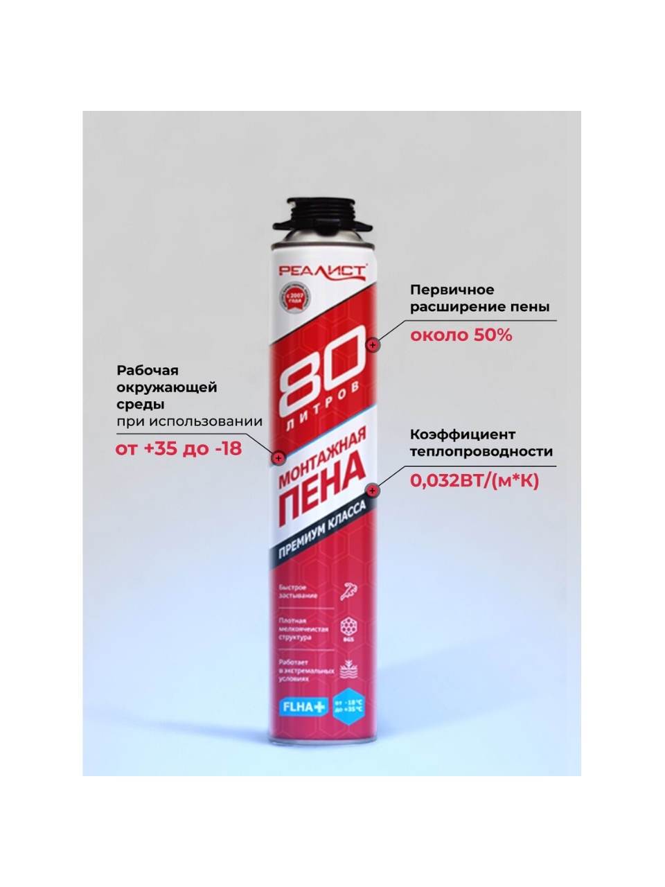 Пена монтажная Realist, PRO Red, профессиональная, 80 л, зимняя, 4602009041075 - фото 1 от пользователя