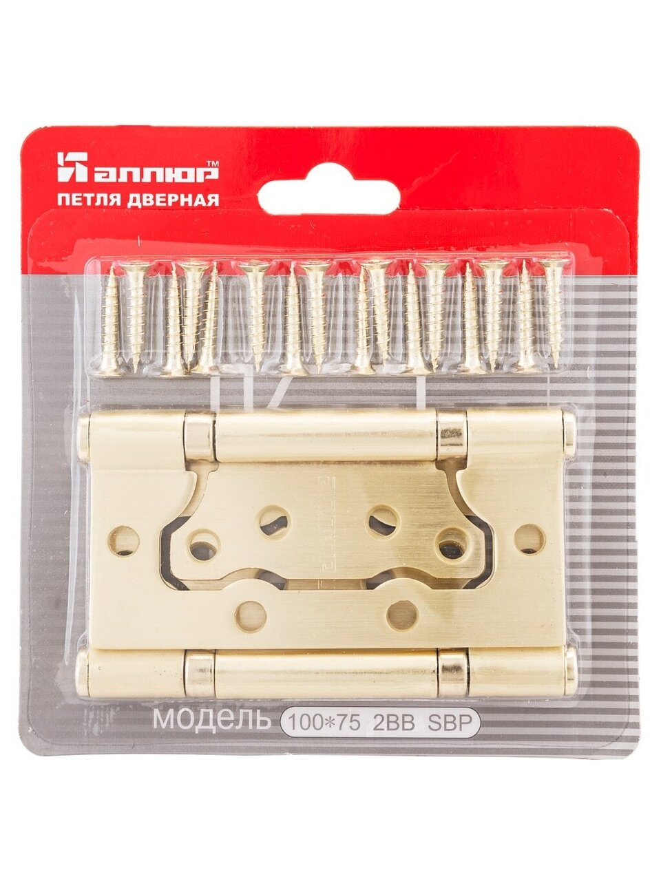 Вы можете приобрести «Петля накладная для деревянных дверей, Аллюр, 100х75х2.5 мм, универсальная, 2BB SBP, 1046, 2 шт, 2 подшипника, блистер, матовая латунь» и другие товары в нашем интернет-магазине в Обнинске по низким ценам и с бесплатным самовывозом.