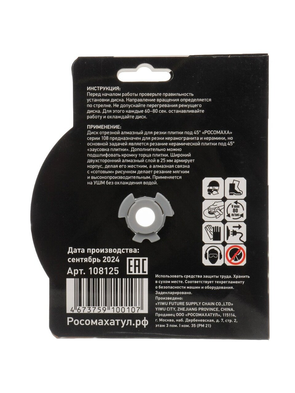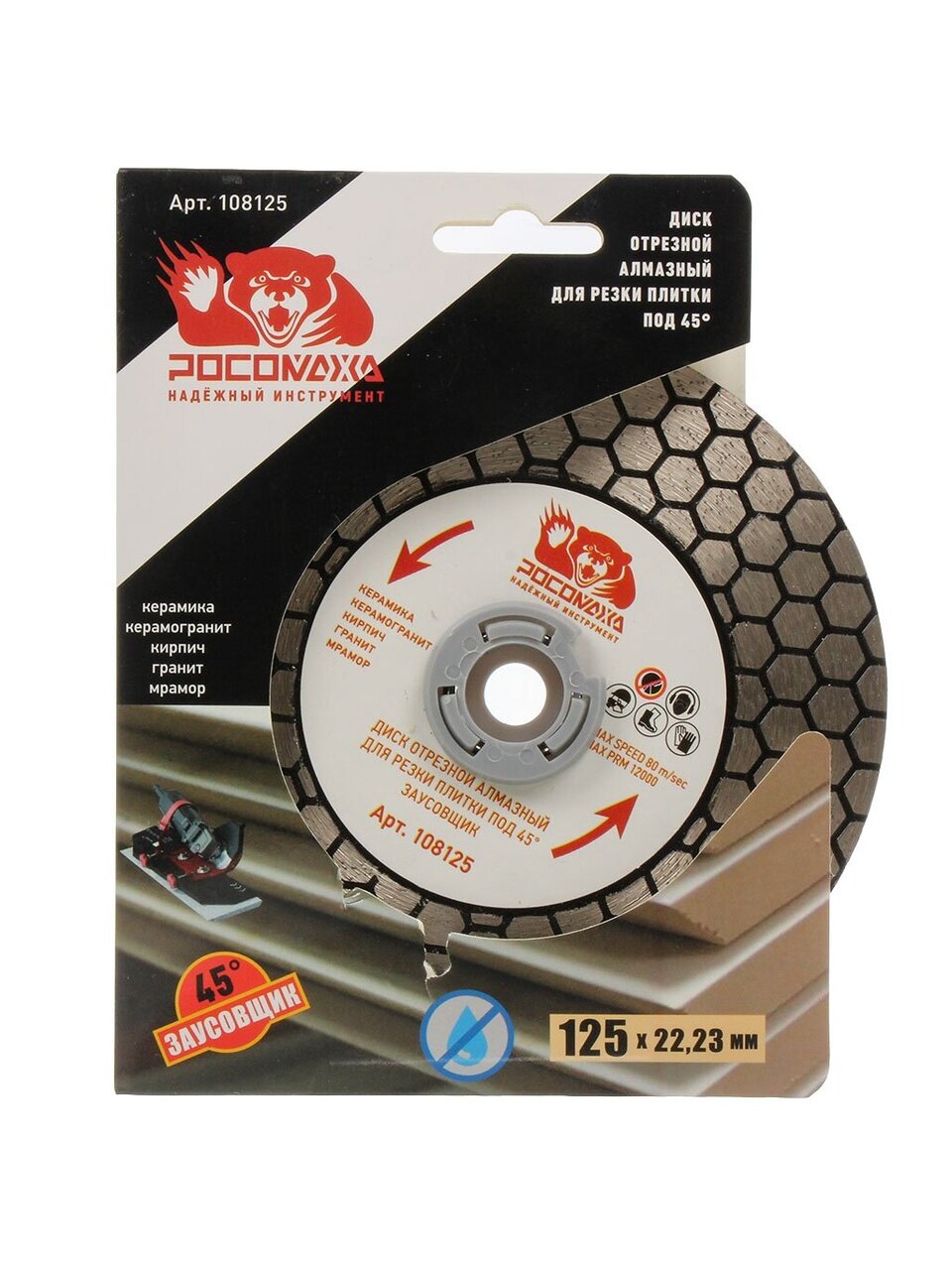 Алмазный диск Росомаха Х-тип 125 мм для керамики — точный рез под 45° без сколов и перегрева, подходит для ремонта дома и профессионального использования.