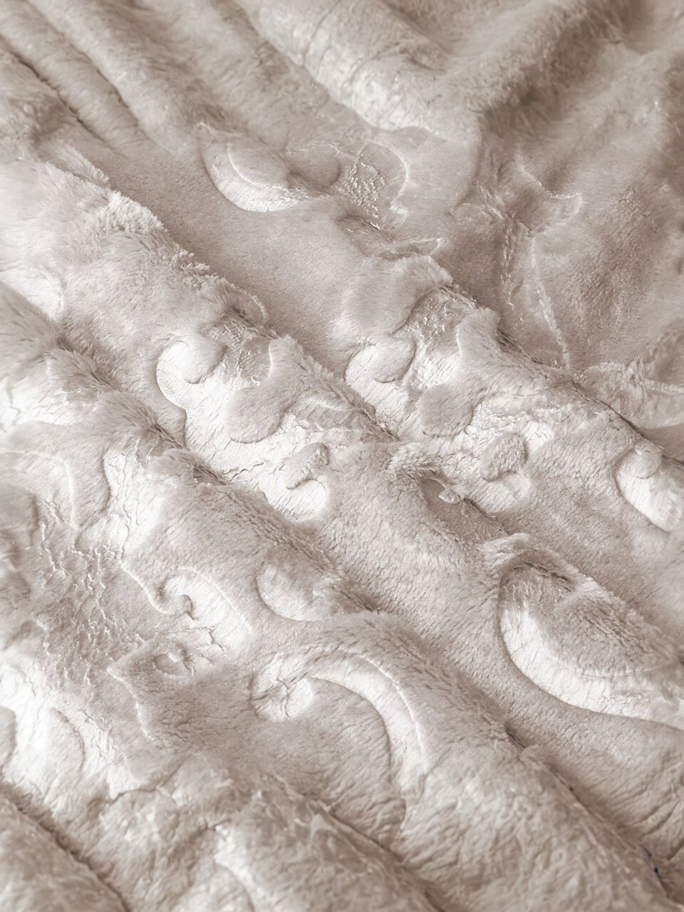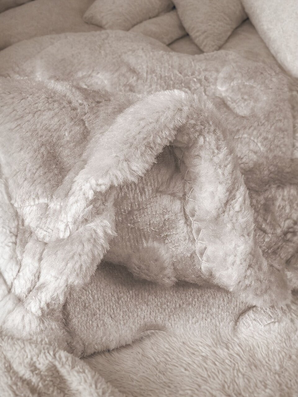 - Плюшевый плед из 100% полиэстера — сохраняет тепло, не вызывает аллергию и легко стирается
