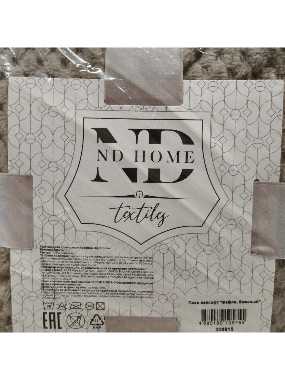 Плед евро 200х220 см ND Home «Вафля» — уют и тепло в каждом доме: мягкий велсофт, стильный бежевый оттенок, выгодная цена для спальни и гостиной.