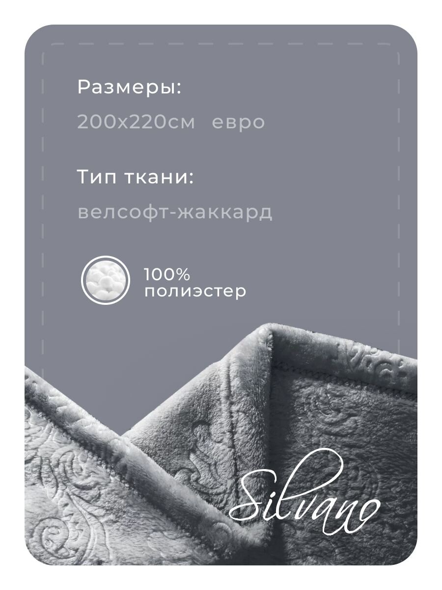 Плед евро 200х220 см Silvano Fresco: уют, стиль и тепло в каждой детали. Мягкий велсофт жаккард, универсальный серый цвет, выгодная цена для дома и дачи.