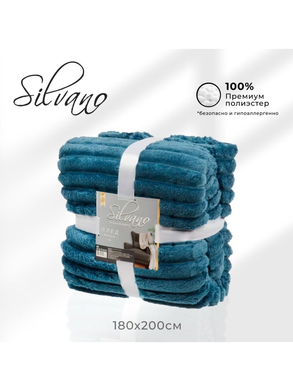Плед 2-спальный Silvano 180х220 см выполнен из плотного велсофта (280 г/м2), что обеспечивает ему приятную мягкость и отличную теплоизоляцию. Благодаря 100% полиэстеру он не вызывает аллергии, не скатывается, сохраняет насыщенный аква-синий цвет даже после многократных стирок. Если вы ищете, какой плед выбрать для спальни или гостиной, обратите внимание на этот вариант: он достаточно большой для двуспальной кровати и идеально ложится на диван.