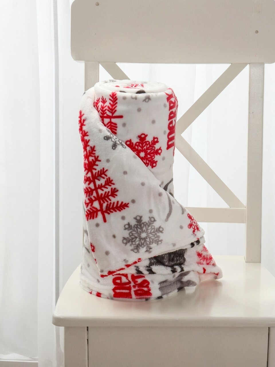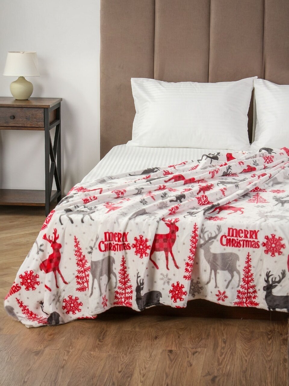 - Двухсторонний плед с новогодним рисунком «Олени» — создаёт атмосферу уюта и праздника