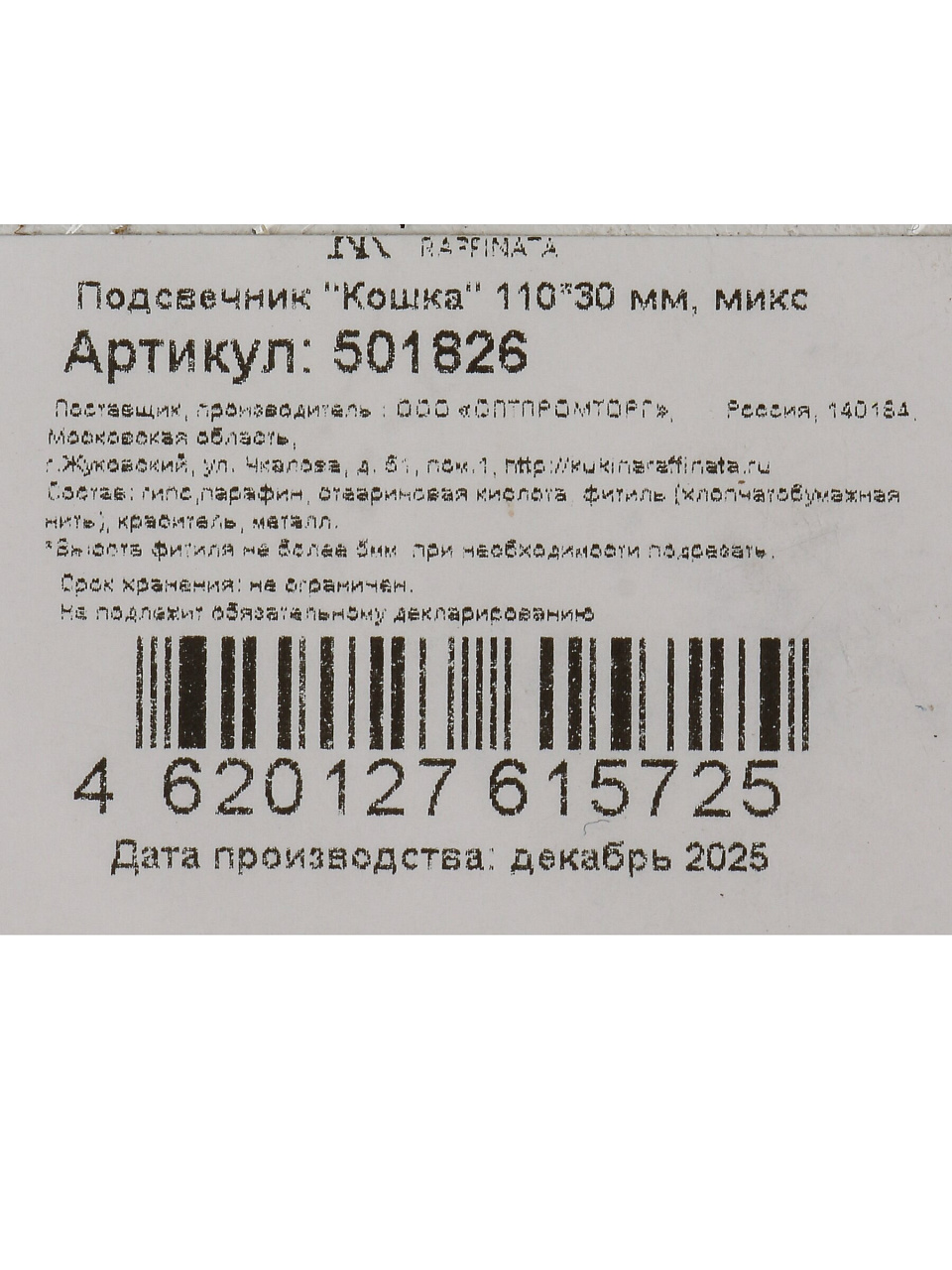 Подсвечник декоративный гипс, 1 свеча,110х3 см, Кошка