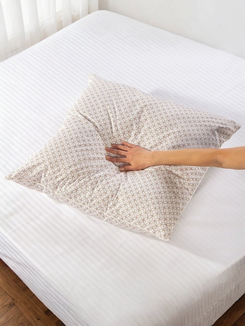 В отличие от натурального пера, искусственный лебяжий пух не сбивается и легко восстанавливает объём после стирки. Подходит ли подушка для сна летом и зимой? Да, она отлично регулирует теплообмен и не накапливает влагу. Классическая квадратная форма 68х68 см — это универсальный выбор для стандартных наволочек, отдыха дома, на даче или в гостях. Подходит для подарка благодаря современному дизайну с узорами и нейтральному белому цвету.