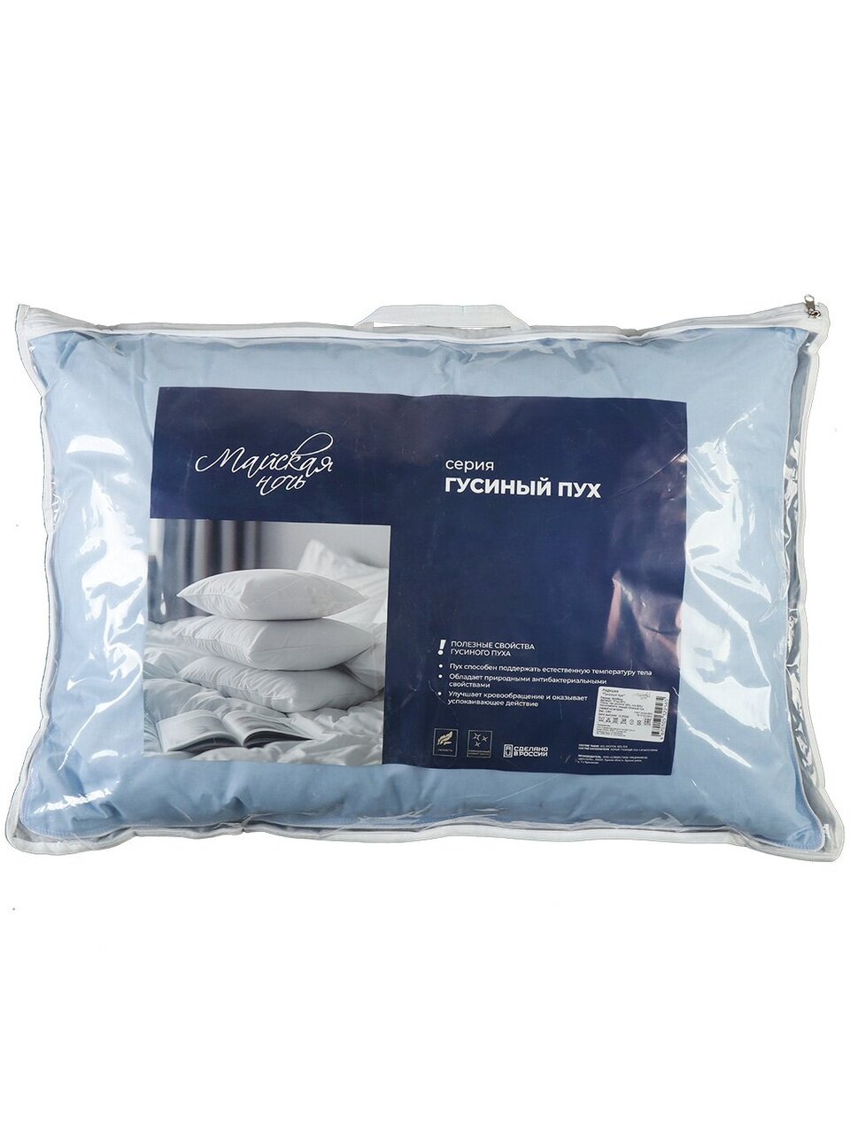 Подушка 50х68 см «Майская ночь» — мягкость гусиного пуха и дышащий хлопковый чехол для здорового сна, комфортно дома и на даче. Закажите выгодно!