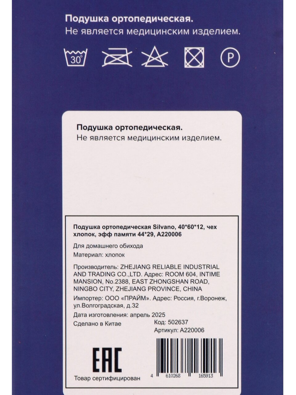 Если вы ищете, какую ортопедическую подушку выбрать для сна или что лучше для профилактики остеохондроза, Silvano — оптимальное решение. В отличие от обычных синтетических моделей, эта подушка не теряет форму даже после длительного использования и подходит для сна на боку, спине и животе. Часто спрашивают: «Подходит ли подушка для подростков?» — да, размеры 40×60×12 см универсальны и обеспечивают поддержку для любого возраста. Легко ухаживать: чехол снимается и стирается.