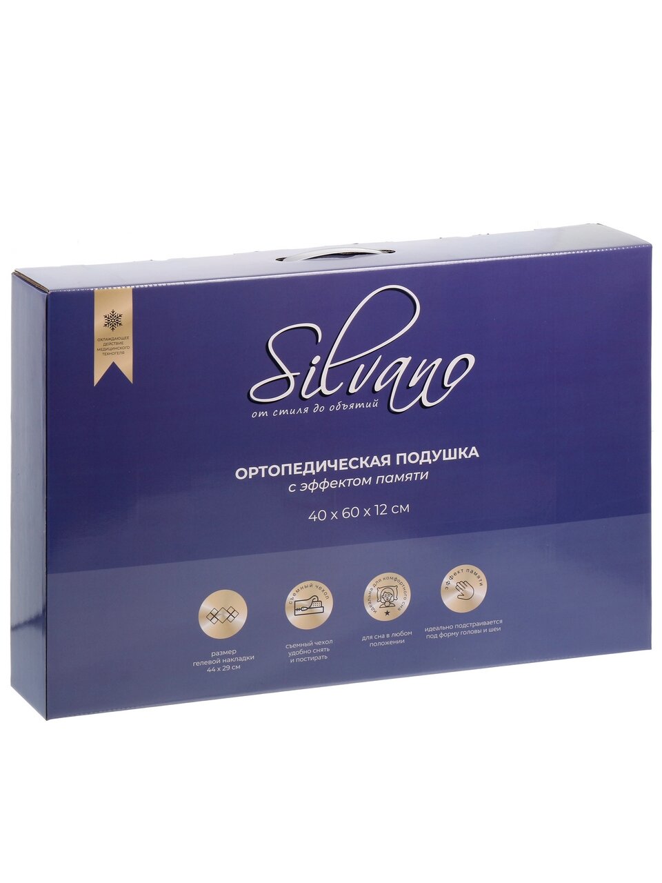 Ортопедическая подушка Silvano 40×60×12 с эффектом памяти — для крепкого сна без боли в шее и спине. Натуральный хлопок, оптимальная поддержка, долгий срок службы.