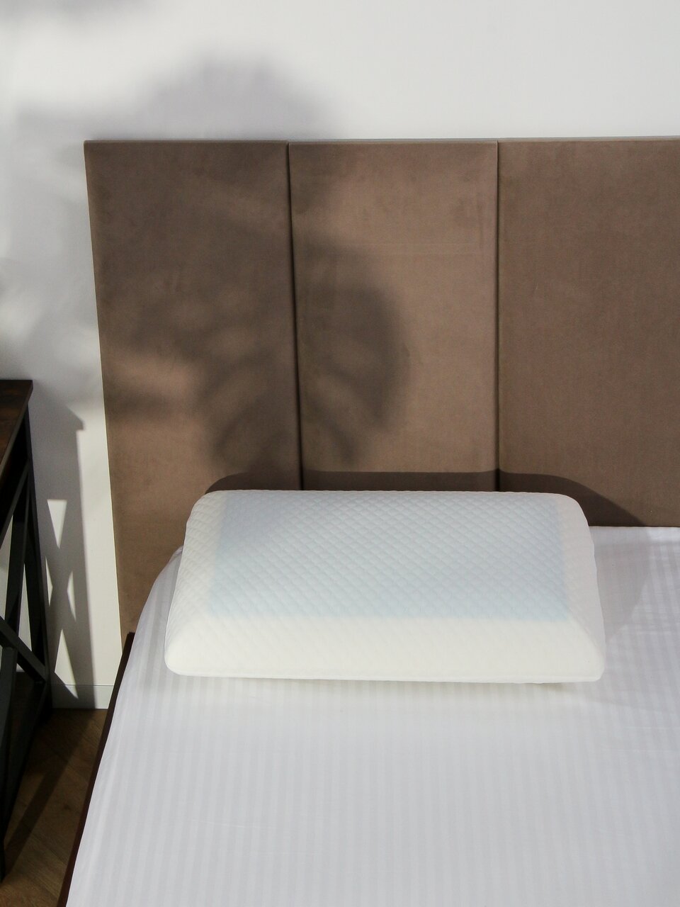Материал с памятью формы подстраивается под индивидуальные изгибы головы и шеи, снижая нагрузку на позвоночник и предотвращая появление боли после сна.