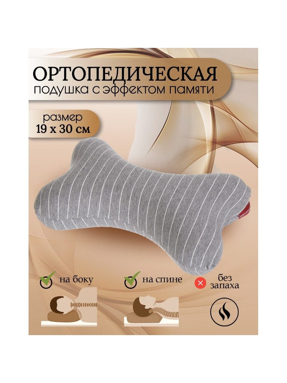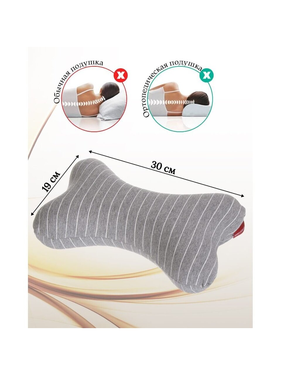 Ортопедическая подушка «Косточка» 19×30 см с эффектом памяти: комфорт для сна, гипоаллергенный чехол из хлопка, идеальна для дома, дачи и путешествий.