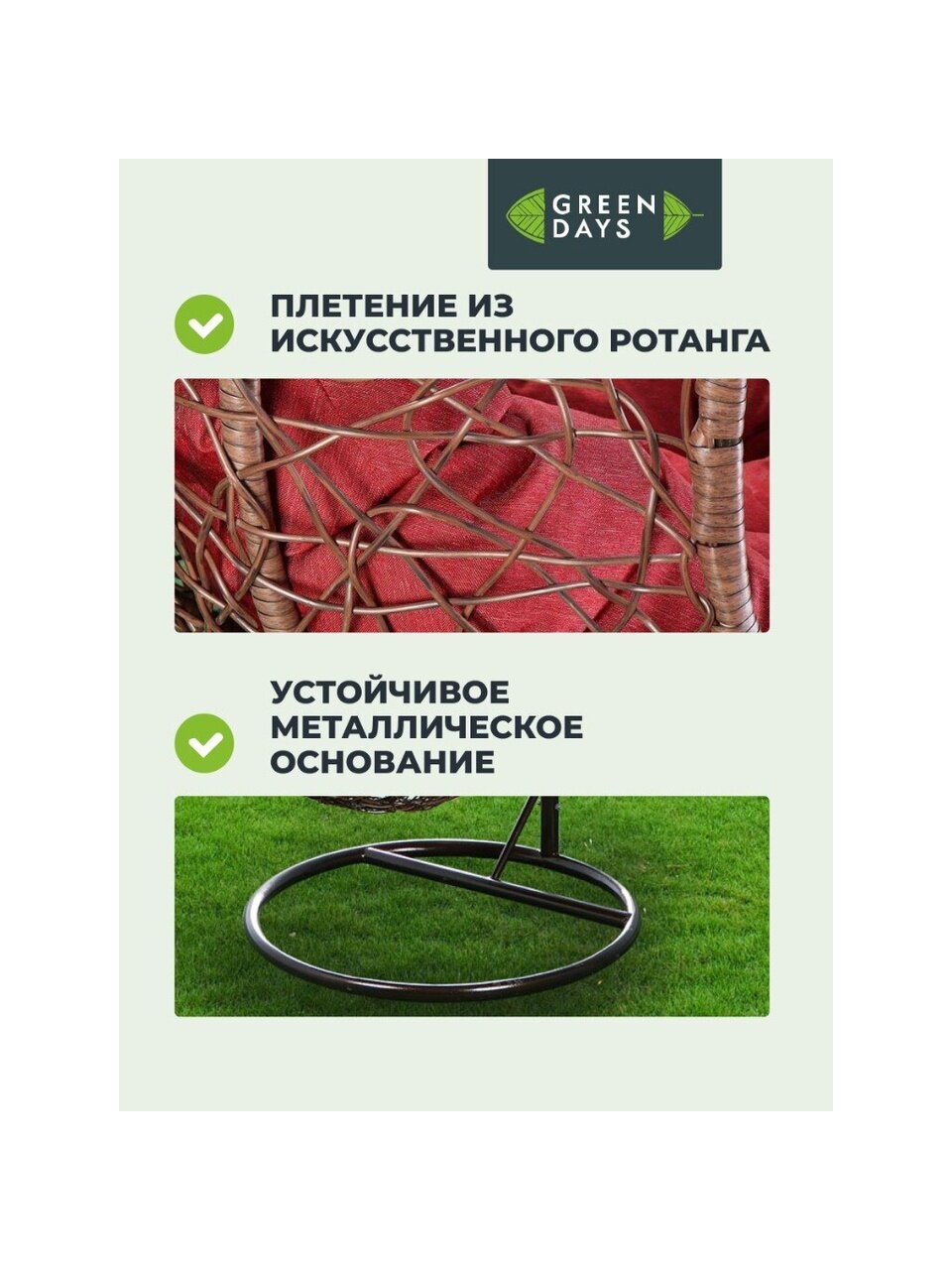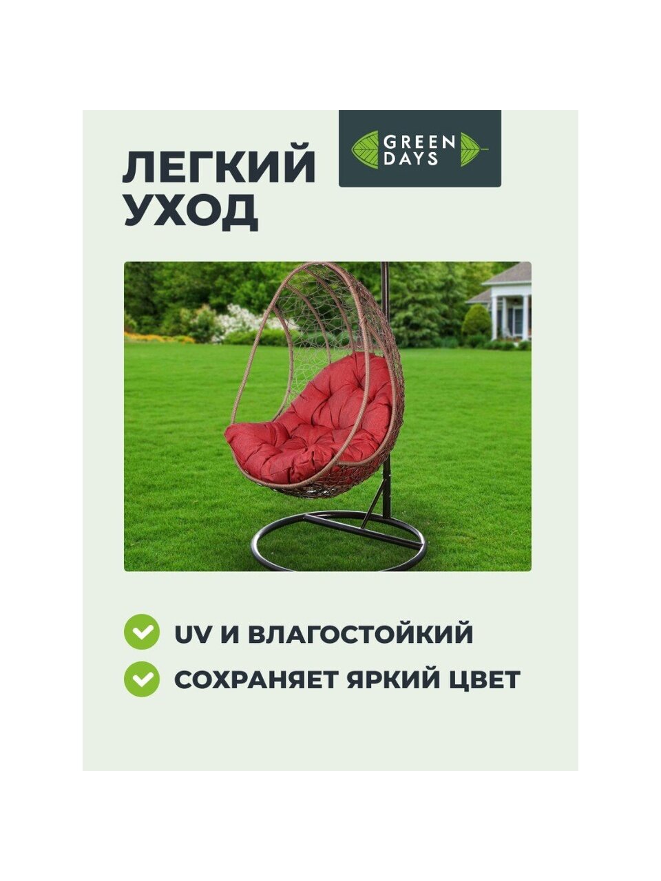 Вы можете приобрести «Подвесное кресло Кокон, 1-мест, 67х92х198 см, 100 кг, Green Days, черный/коричневое, подушка бордово-красная, TZF-H049-C200H-16» и другие товары в нашем интернет-магазине в Армавире по низким ценам и с бесплатным самовывозом.