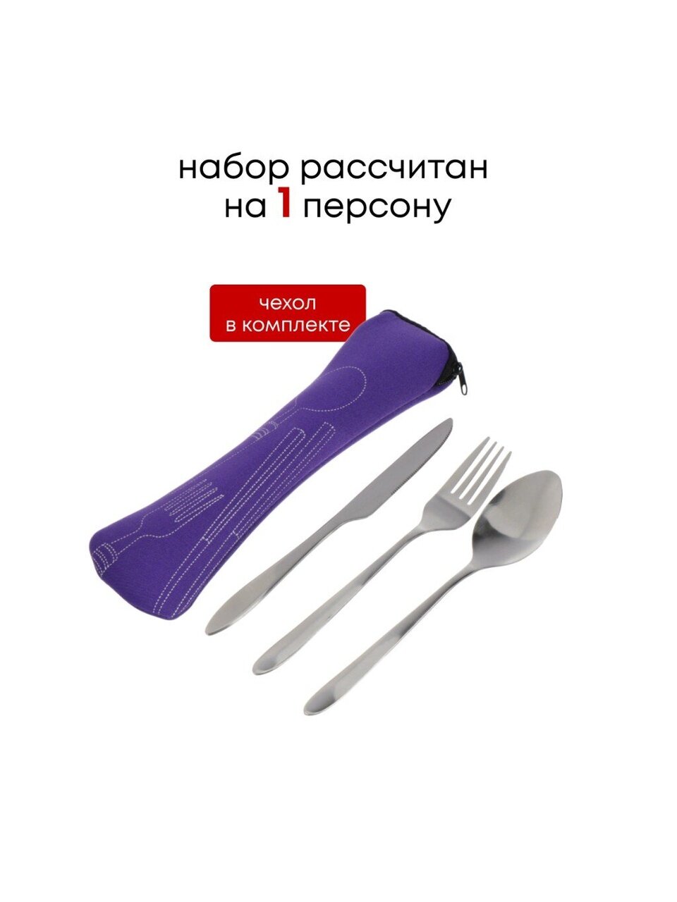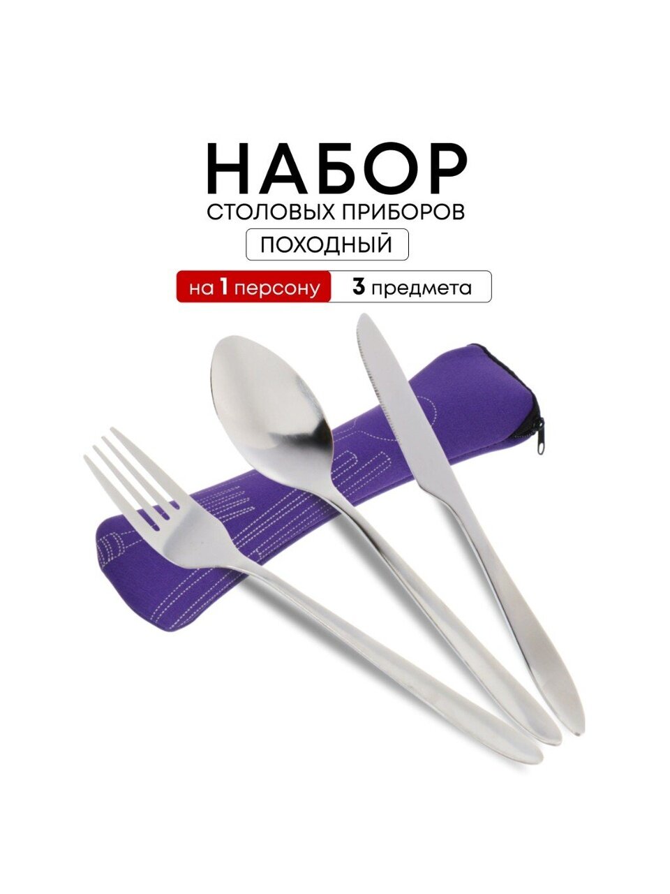 Набор столовых приборов состоит из ложки, вилки и ножа. Рабочие поверхности предметов выполнены из нержавеющей стали. Универсальный набор для путешественника станет незаменимым помощником в походе.