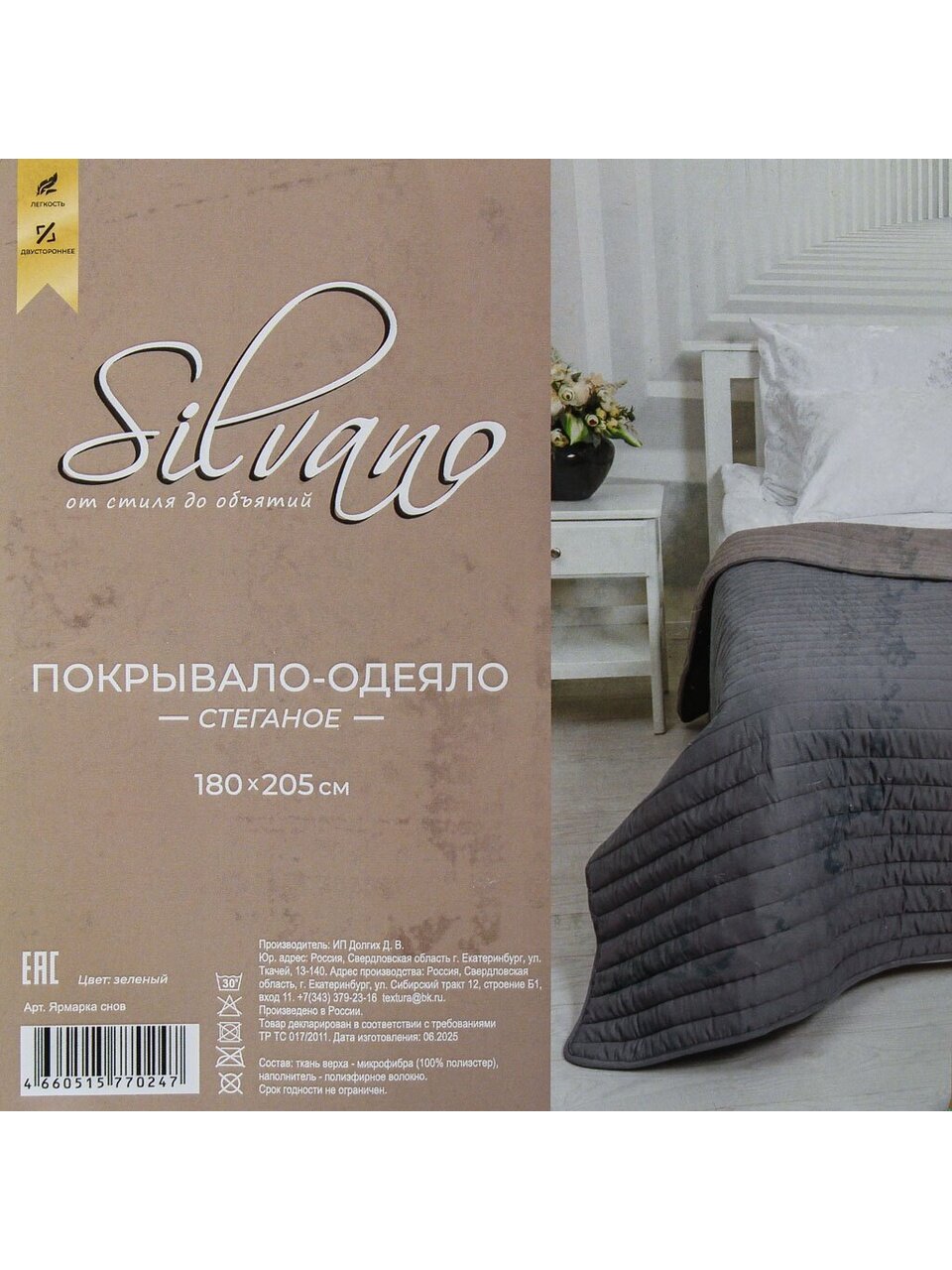 Модель Silvano Текстура — выбор для тех, кто ценит сочетание стиля и практичности. Полиэстер отличается устойчивостью к износу, не требует сложного ухода, быстро сохнет после стирки и сохраняет насыщенность цвета даже после многократных стирок. Благодаря этому покрывало долго сохраняет привлекательный внешний вид и свежесть, радуя своим качеством и комфортом.