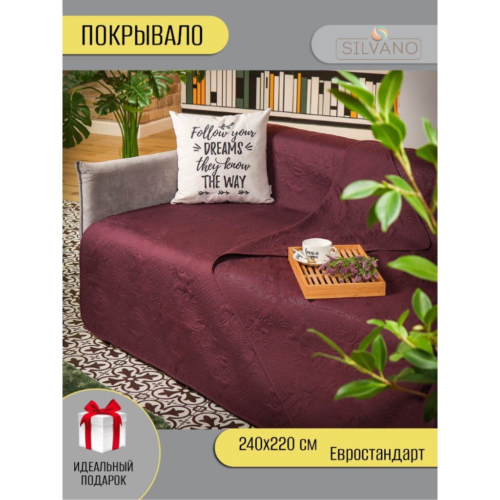 Покрывало евро, 240х220 см, 100% полиэстер, стеганое, Silvano, Ульстрасоник Мозаика, черничное, AI-0404004