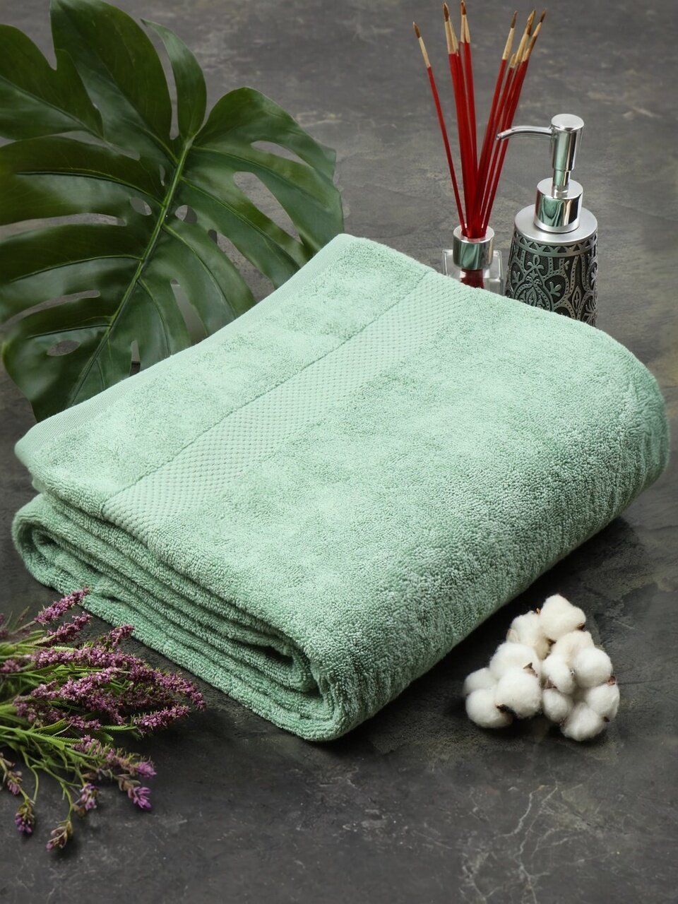 Полотенце банное 100х180 см Barkas Spa: премиальный хлопок 500 г/м², стильный серо-бирюзовый оттенок для комфорта после душа и сауны.