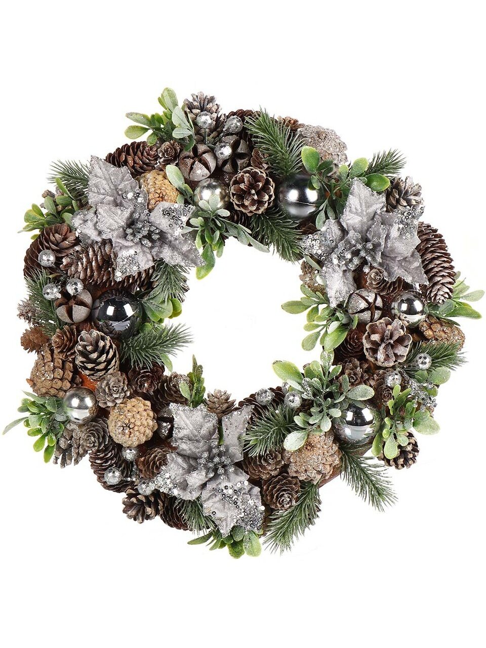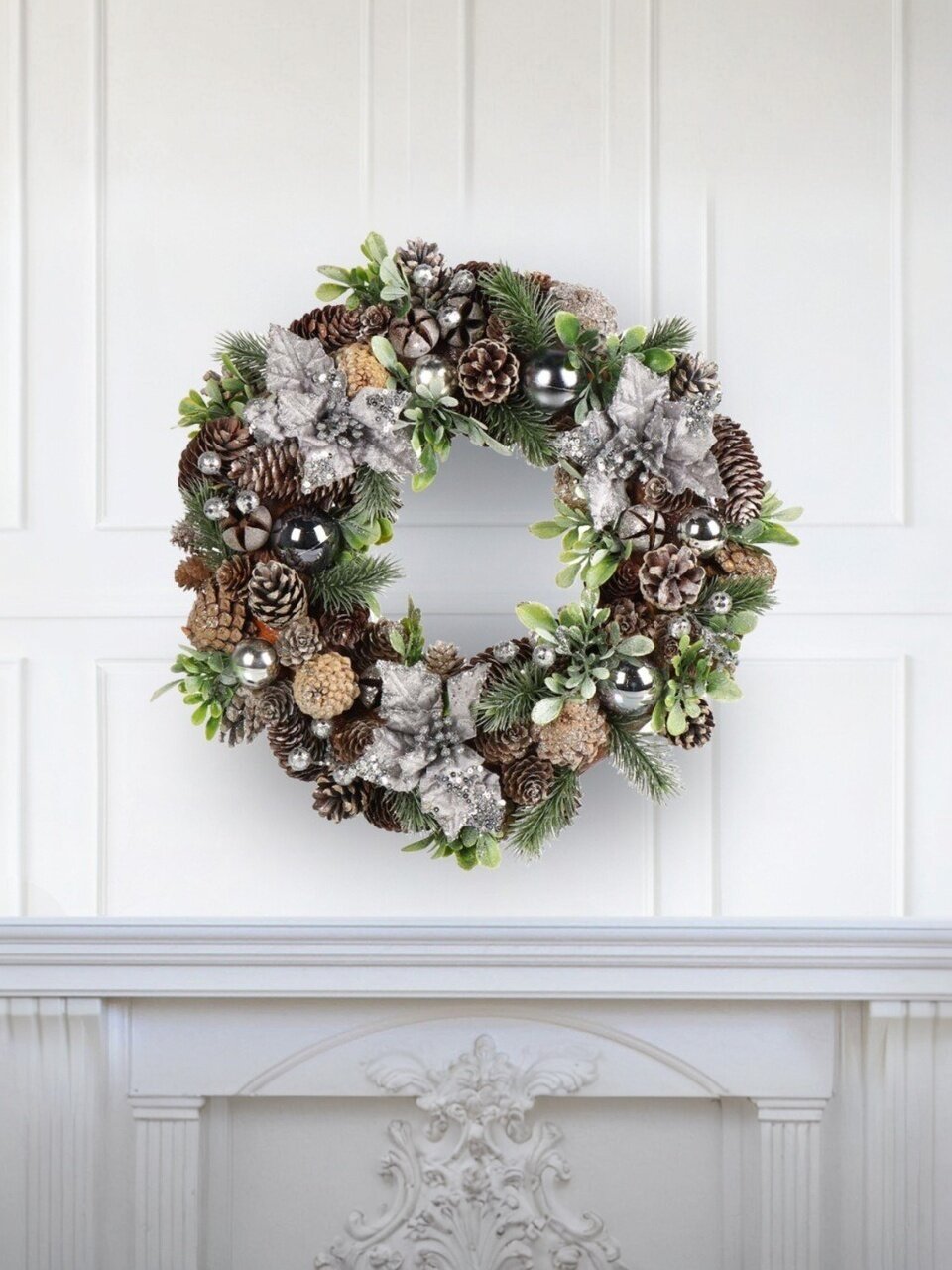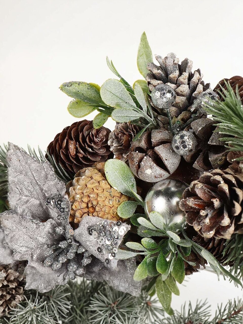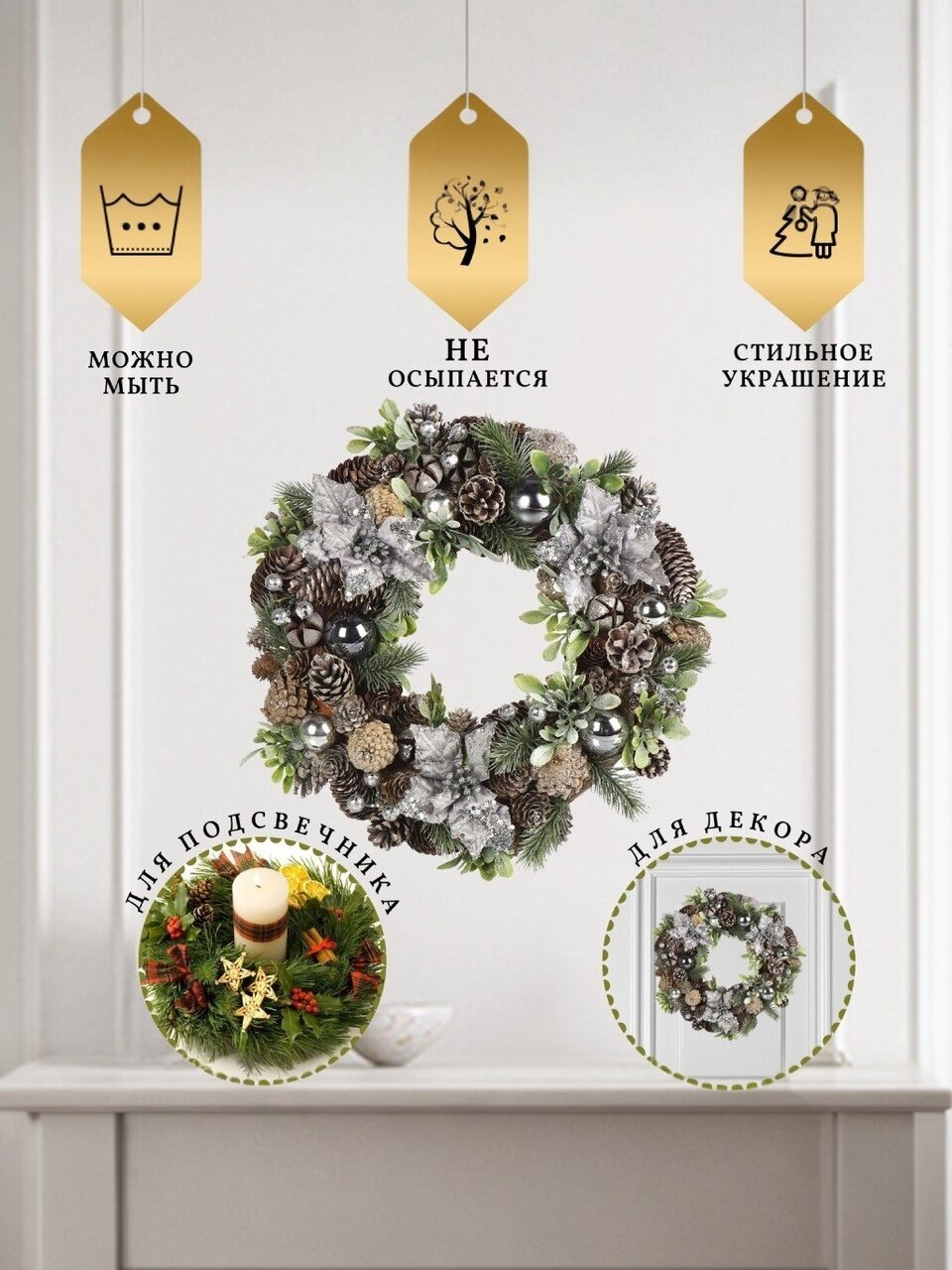 Живописный рождественский венок принесет долгожданный дух зимних праздников, сделает атмосферу в доме уютной, торжественной и элегантной. Этот венок со временем не осыпается и не создает никакого мусора при использовании, поэтому прослужит вам не один год и станет постоянным атрибутом декора вашего дома или рабочего пространства.