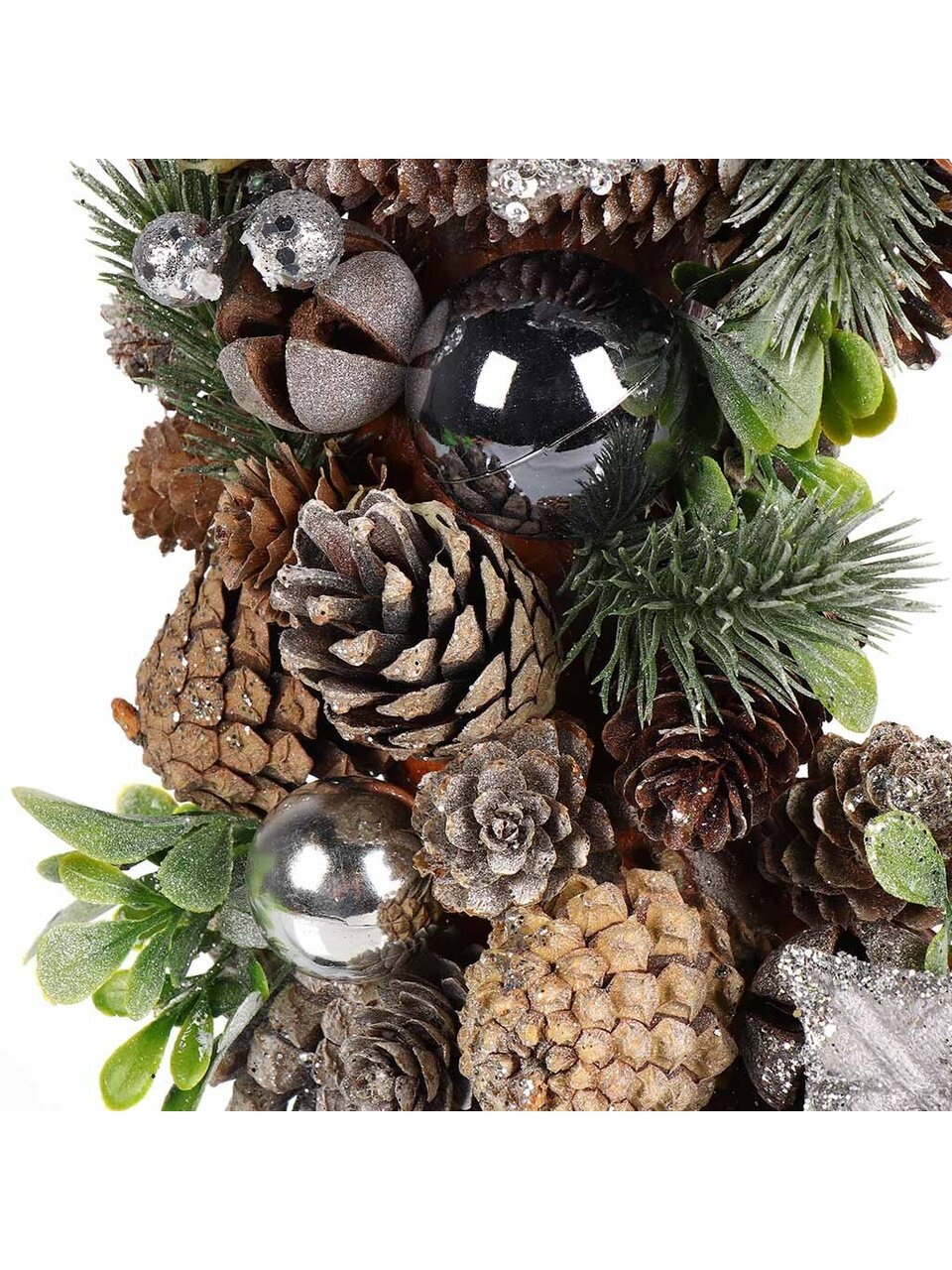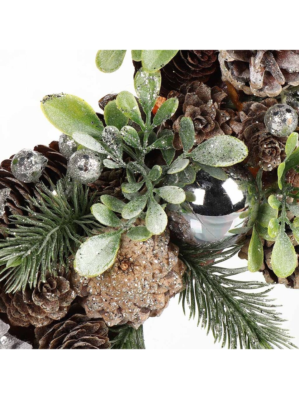 - Изготовлен из натуральных шишек и веточек с искусственными иголками, визуально неотличимых от настоящих.