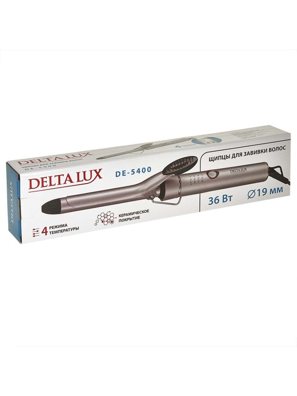 Щипцы для завивки волос Delta Lux DE-5400 — идеальные локоны за 10 минут: 4 режима, керамическое покрытие, диаметр 19 мм. Ваш стиль без лишних затрат.